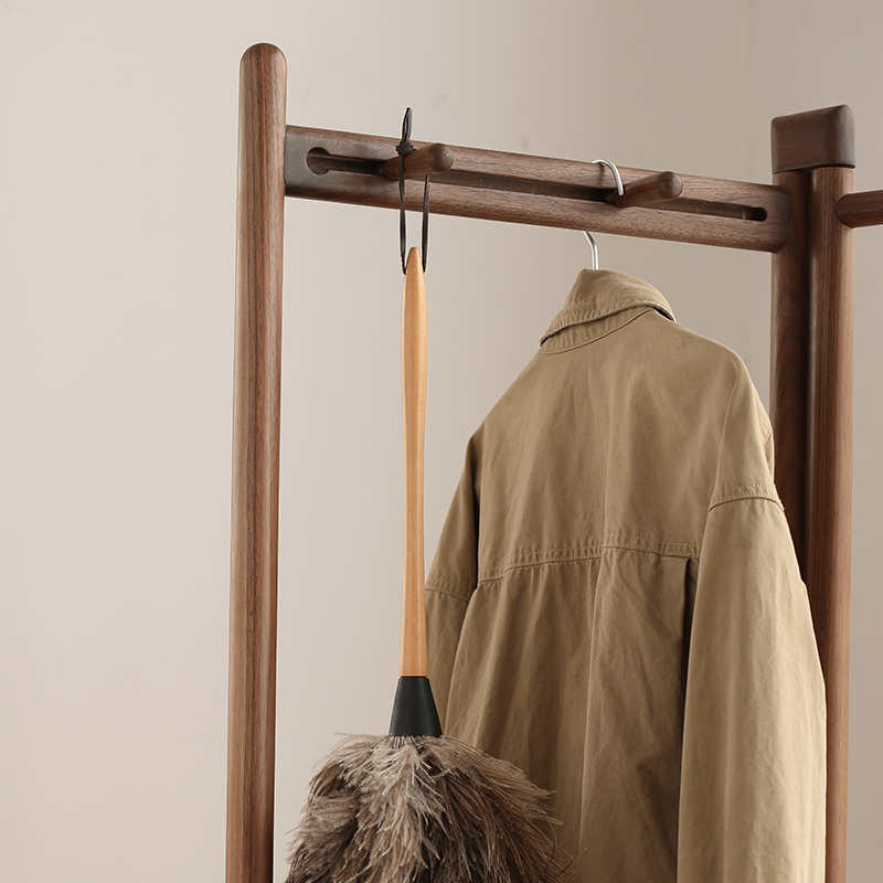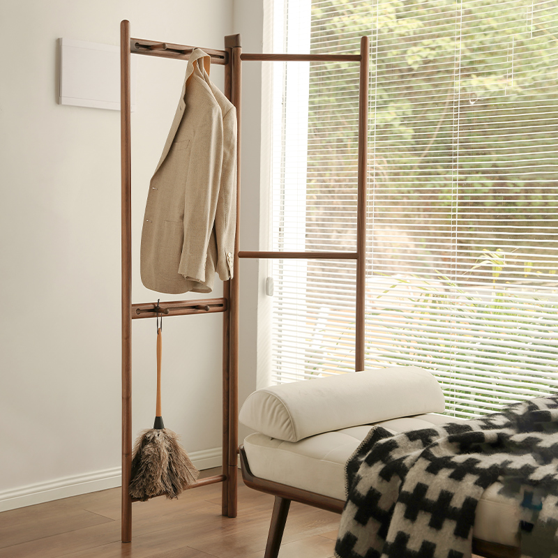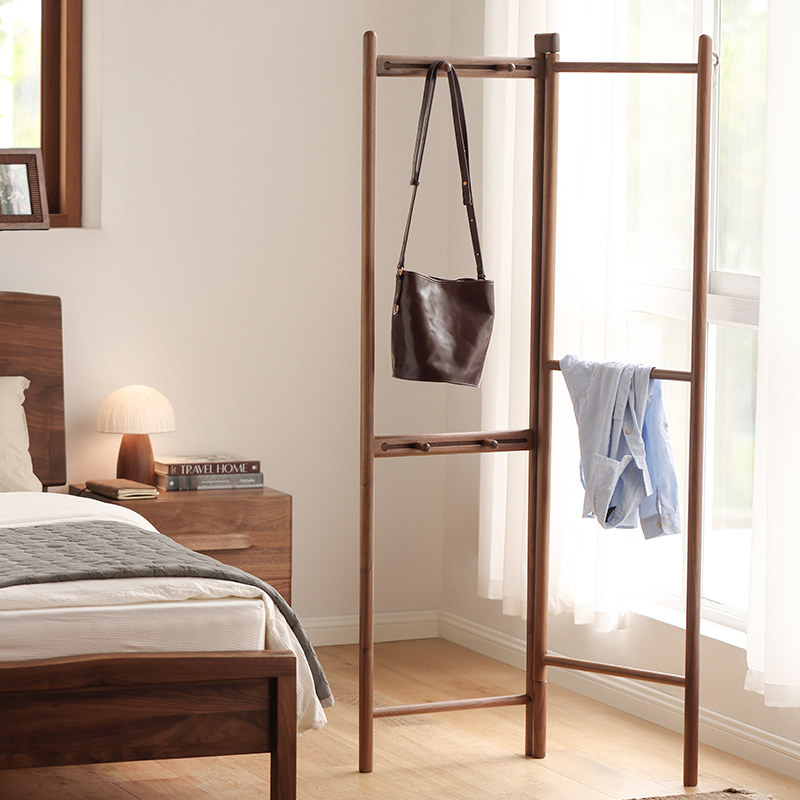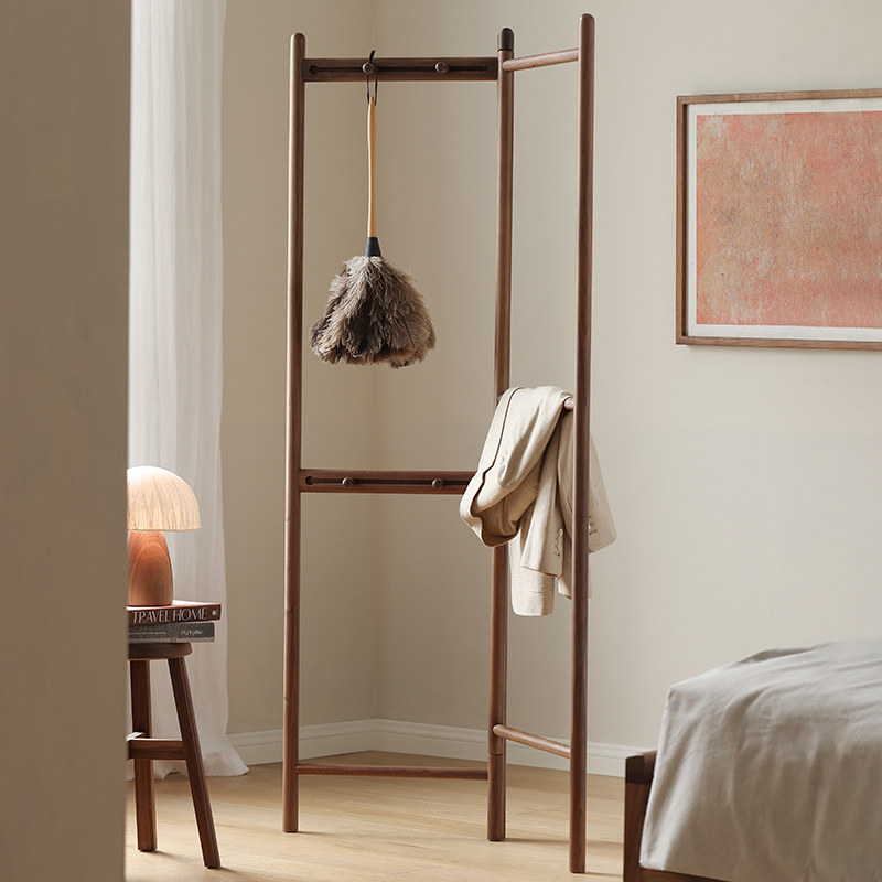 北美黑胡桃木卧室衣架实木落地挂衣架转角衣帽架开放式衣服置物架