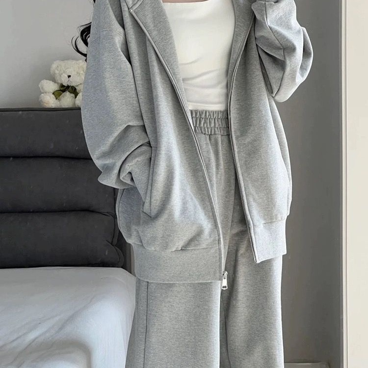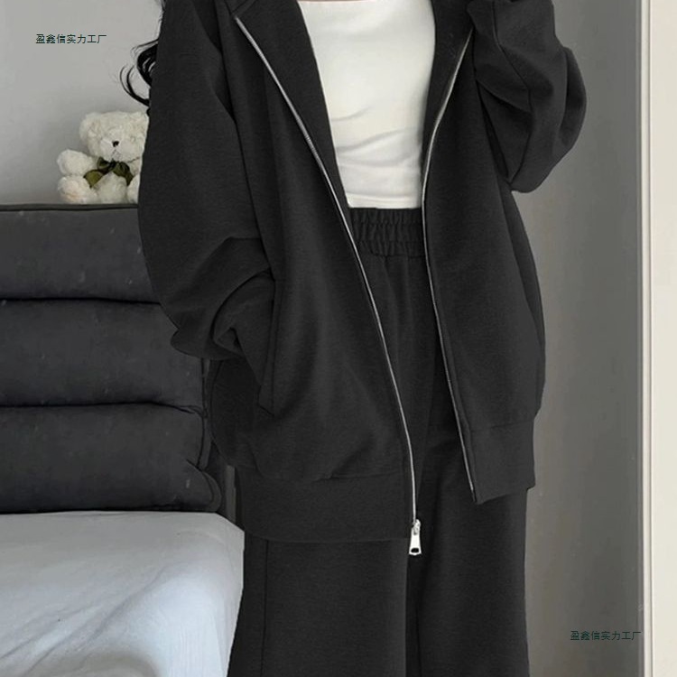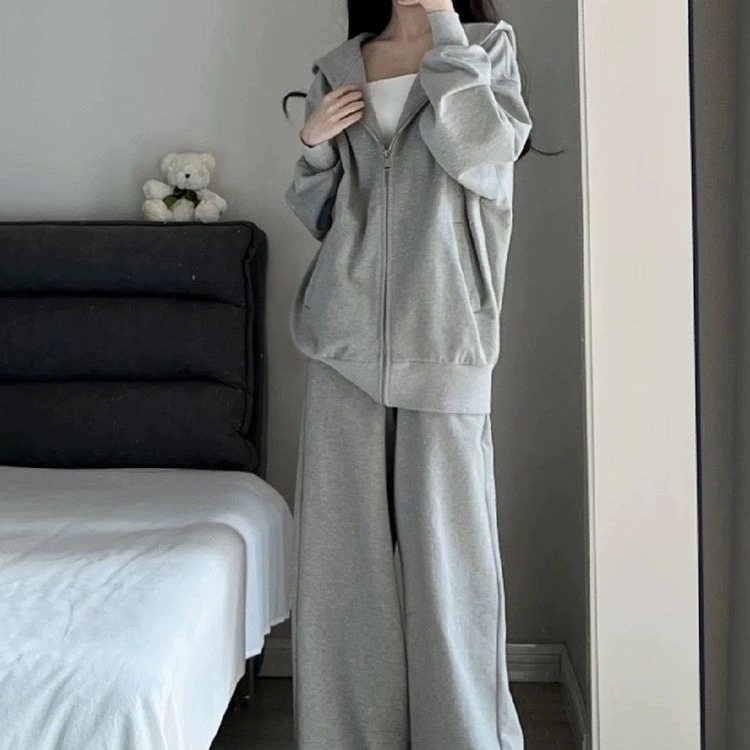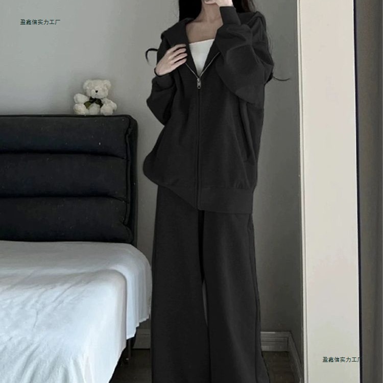 运动套装女春秋健身慵懒风宽松学生连帽卫衣外套阔腿裤休闲两件套