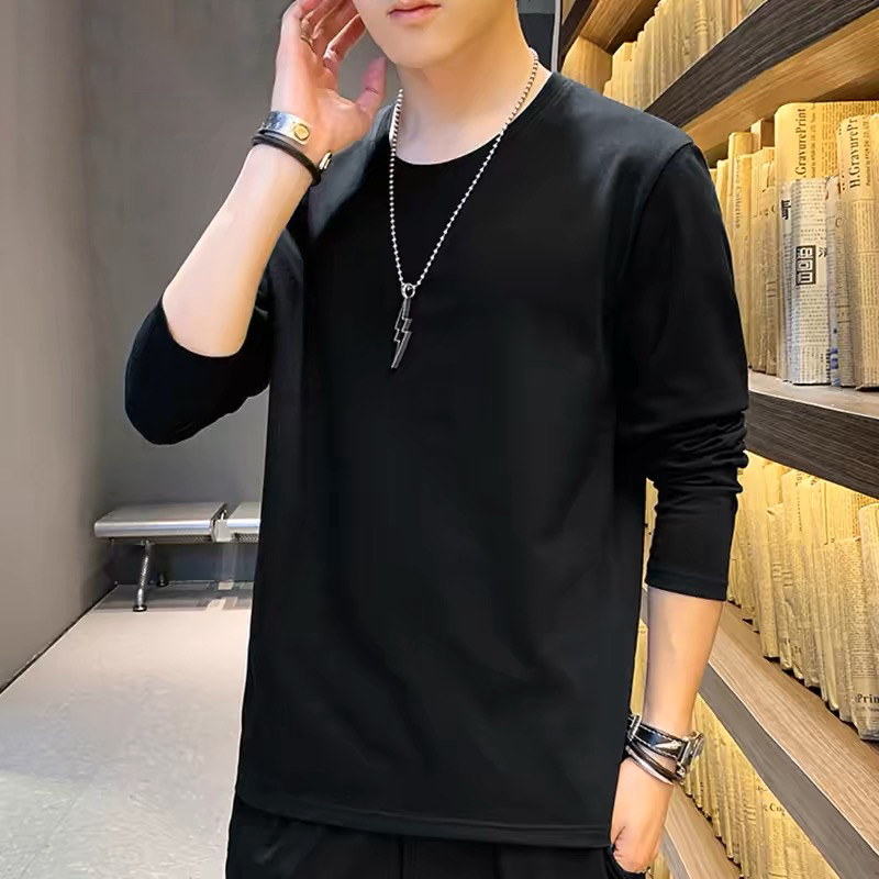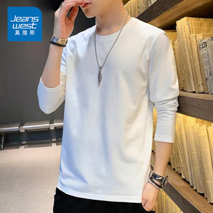 NG真维斯纯棉白色长袖T恤男秋季新款内搭潮流简约百搭圆领打底衫