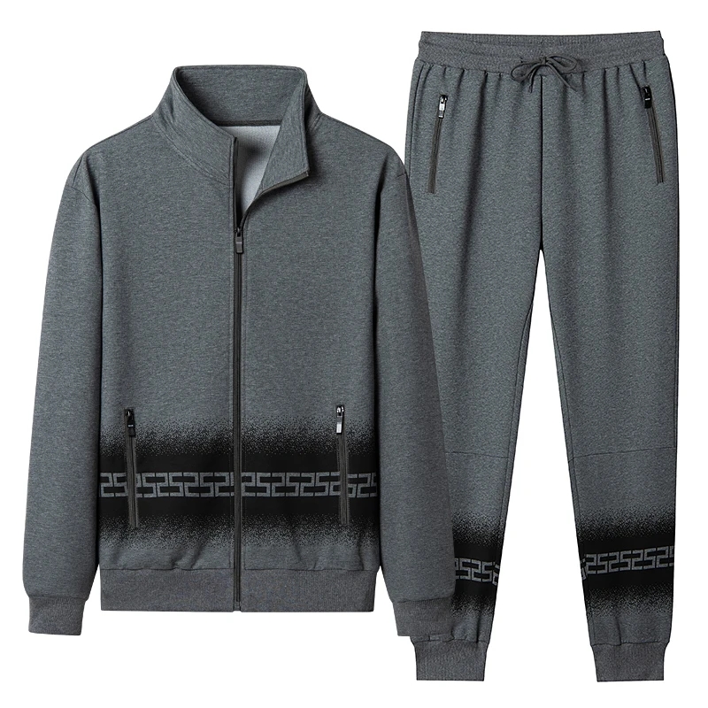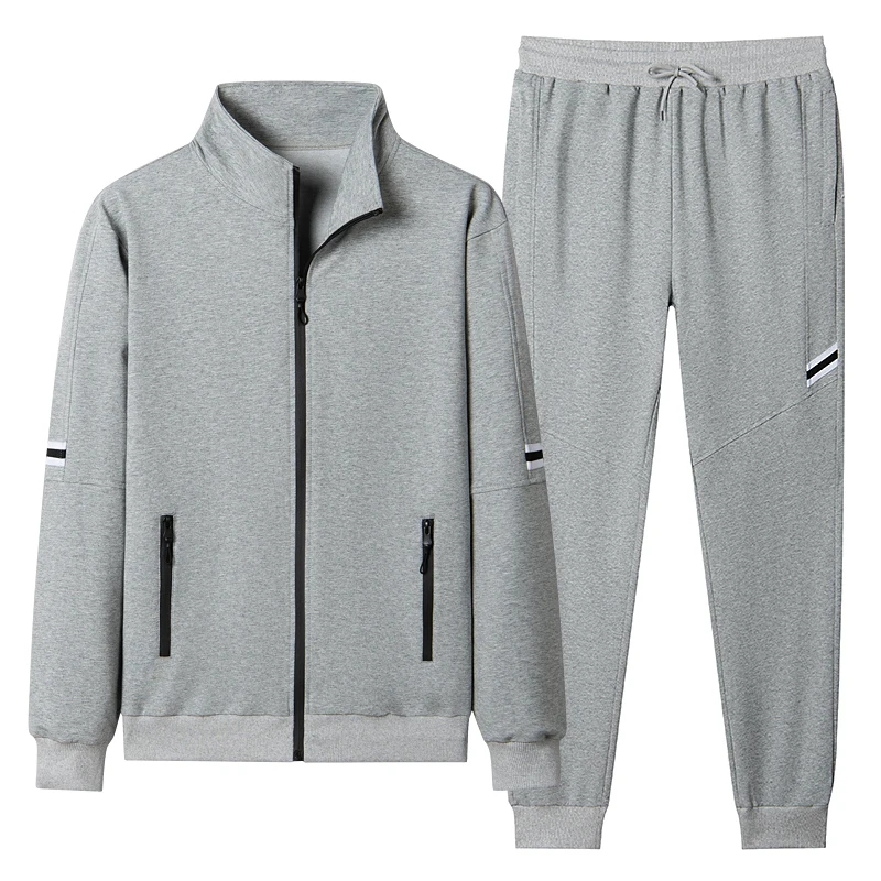 一套长裤休闲运动套装男春秋装中青年外套加肥大码立领卫衣爸爸装