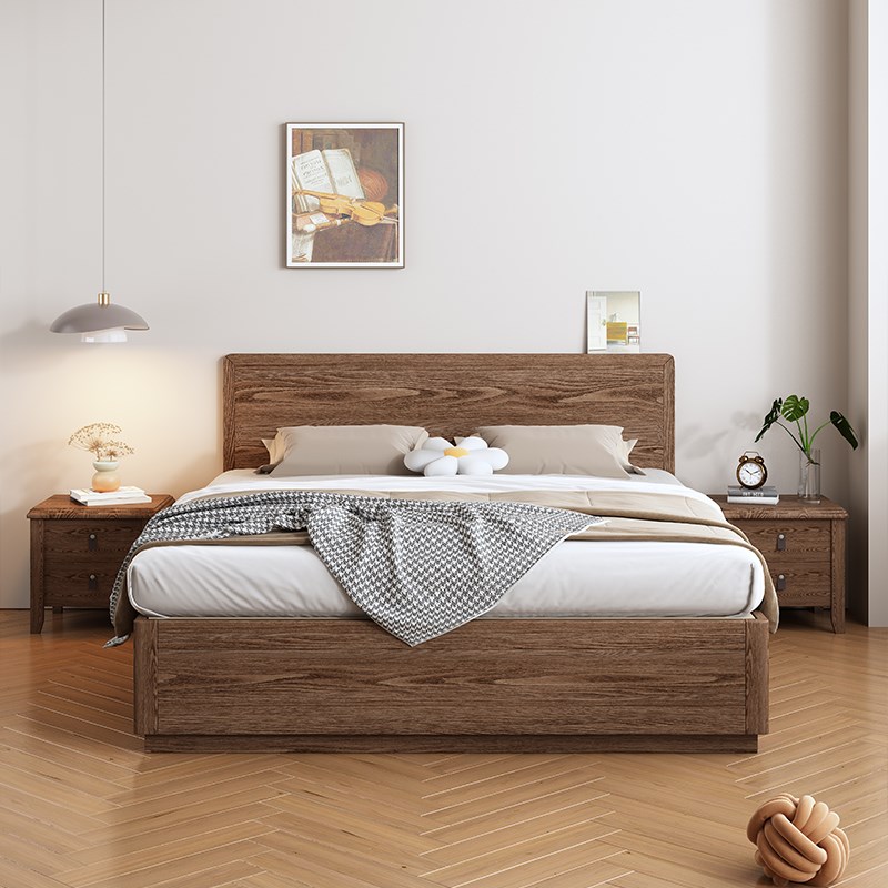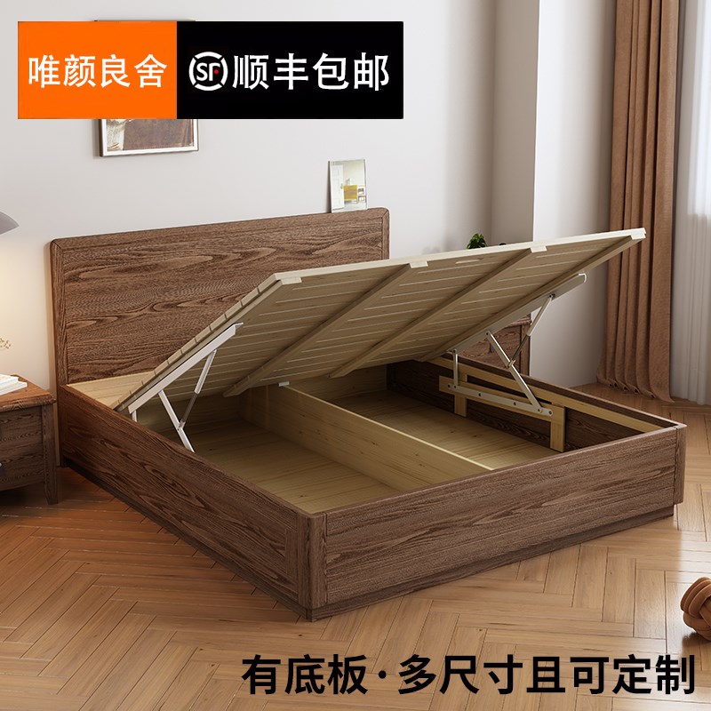 胡桃色侧翻薄床头储物床白蜡木实木床1.5床小户型气压高箱收纳床