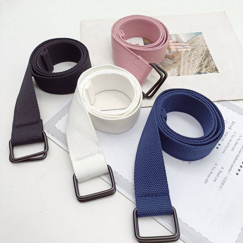 帆布腰带男女ins潮韩版纯色简约百搭裤带糖果色加长双环扣皮带