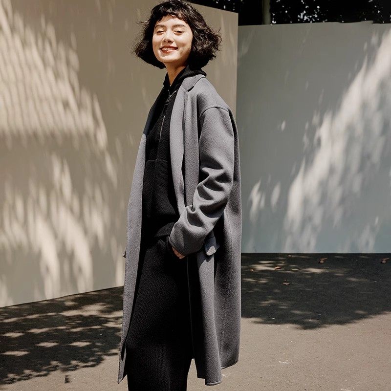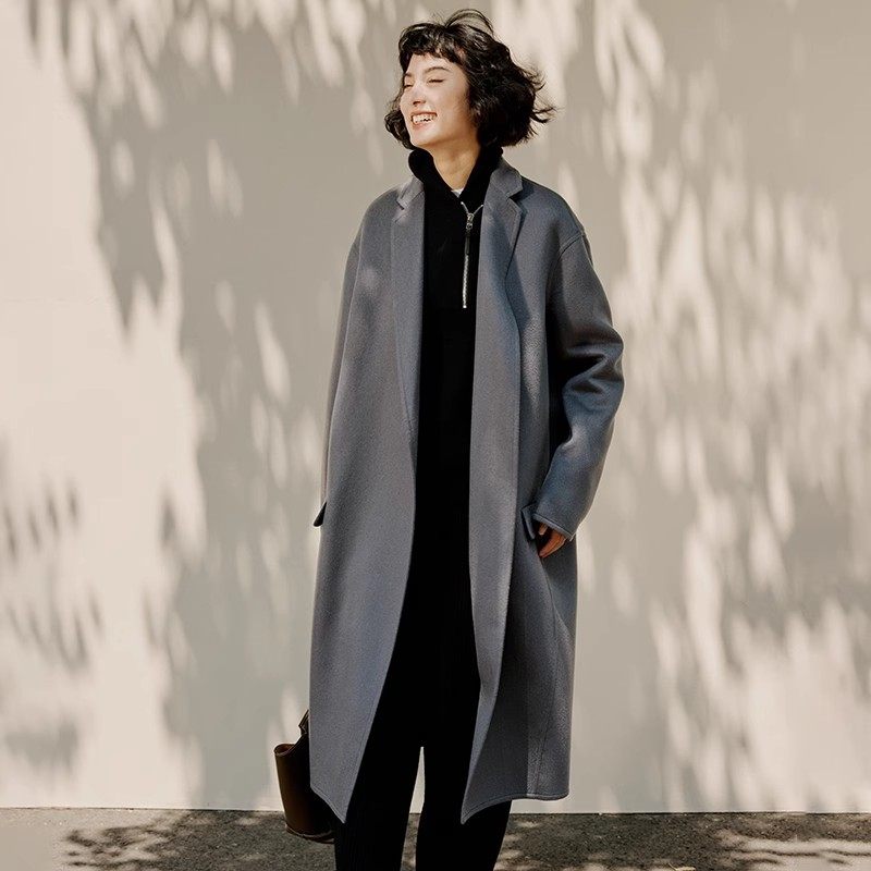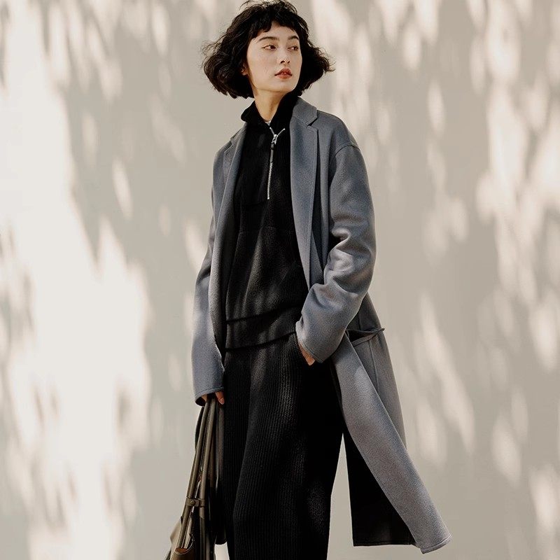 WDY06046 茉莉雅集 全羊绒双面呢短顺斯文西装领长款大衣女