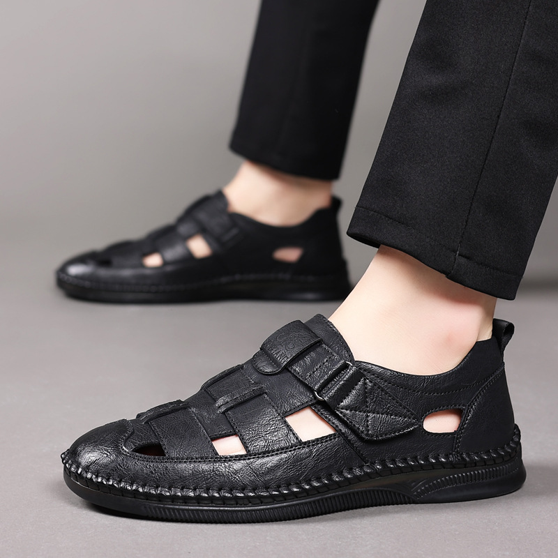男鞋2025夏季透气镂空皮鞋男款休闲洞洞鞋爸爸包头驾车凉鞋一件