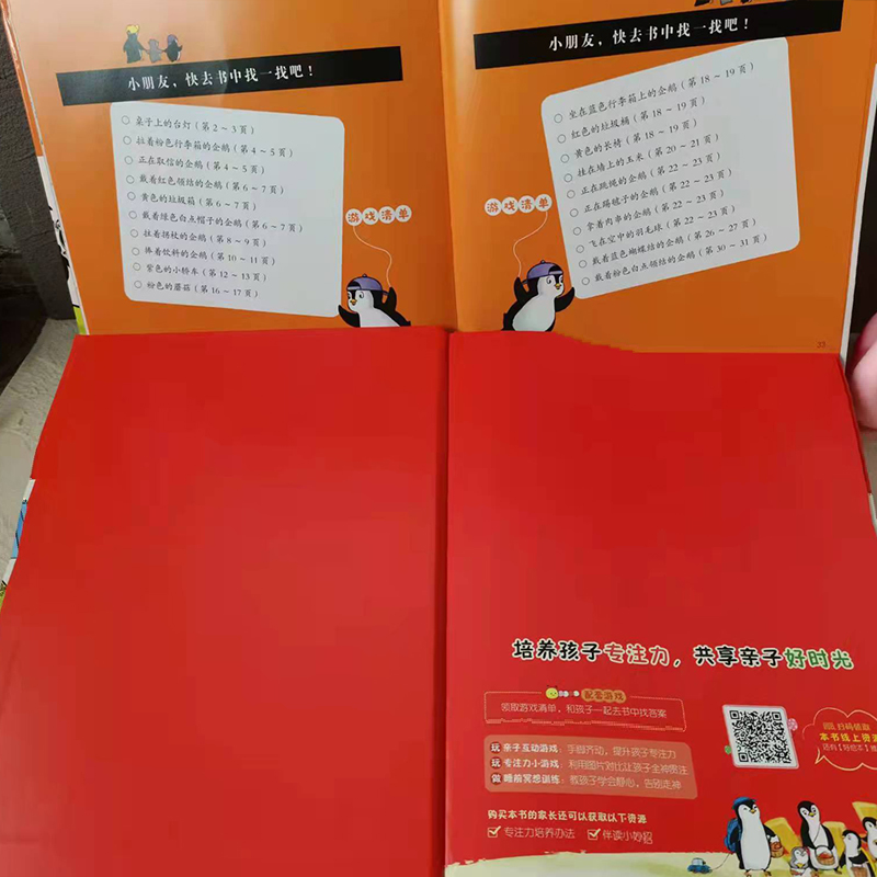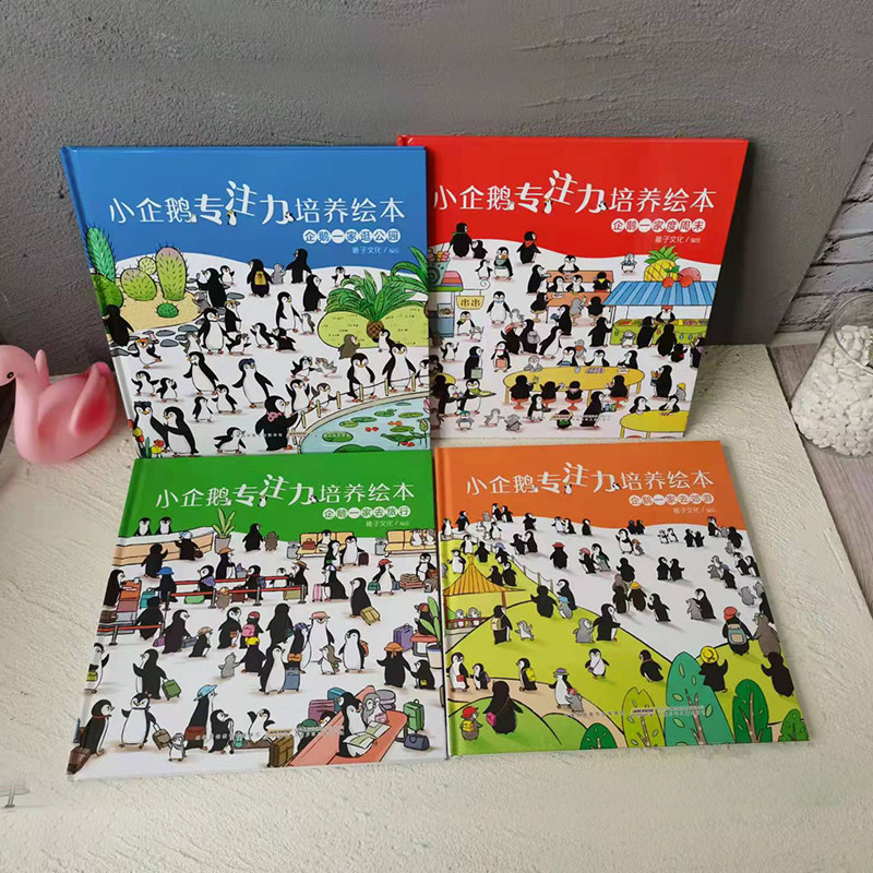 小企鹅专注力培养绘本全4册 精装硬壳 3-6岁幼儿宝宝趣味找不同颜色数字形状认知启蒙游戏儿童观察力思维训练书籍隐藏的图画捉迷藏