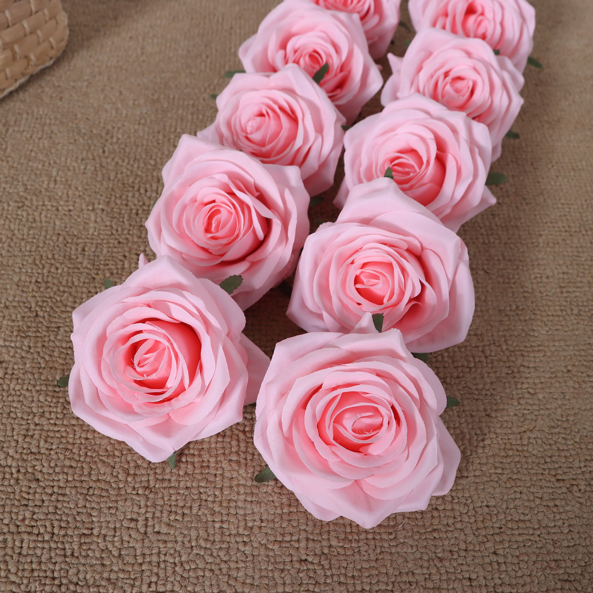 9cm荔枝粉色玫瑰花仿真花朵 蛋糕装饰摆盘搭配 礼盒diy绢布假花头