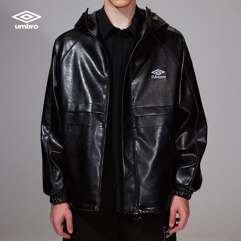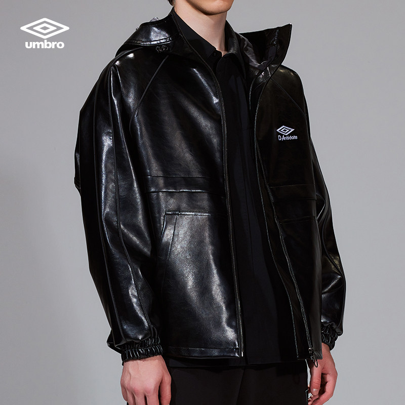 umbro茵宝 X D-Antidote联名皮衣连帽运动保暖外套复古夹克风衣