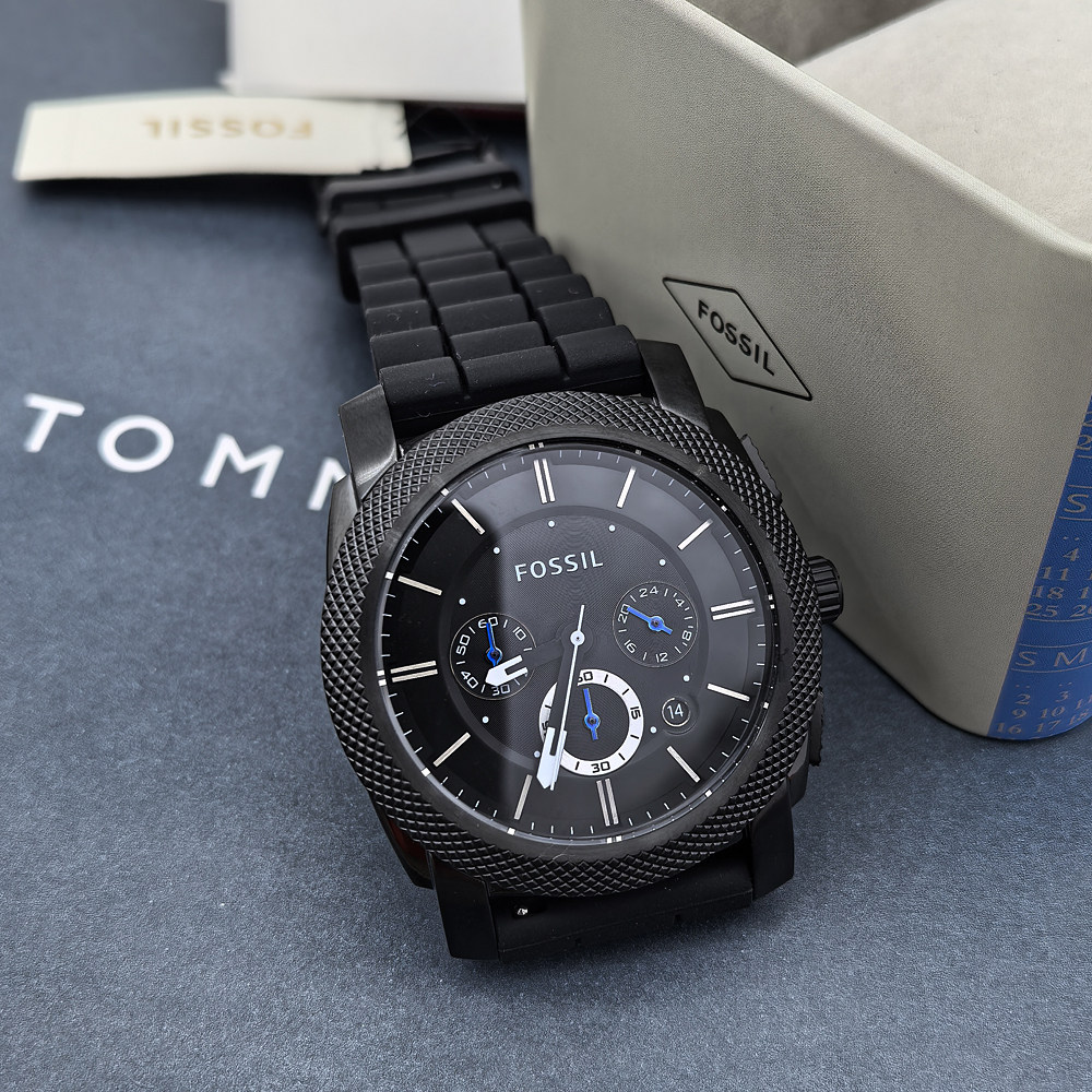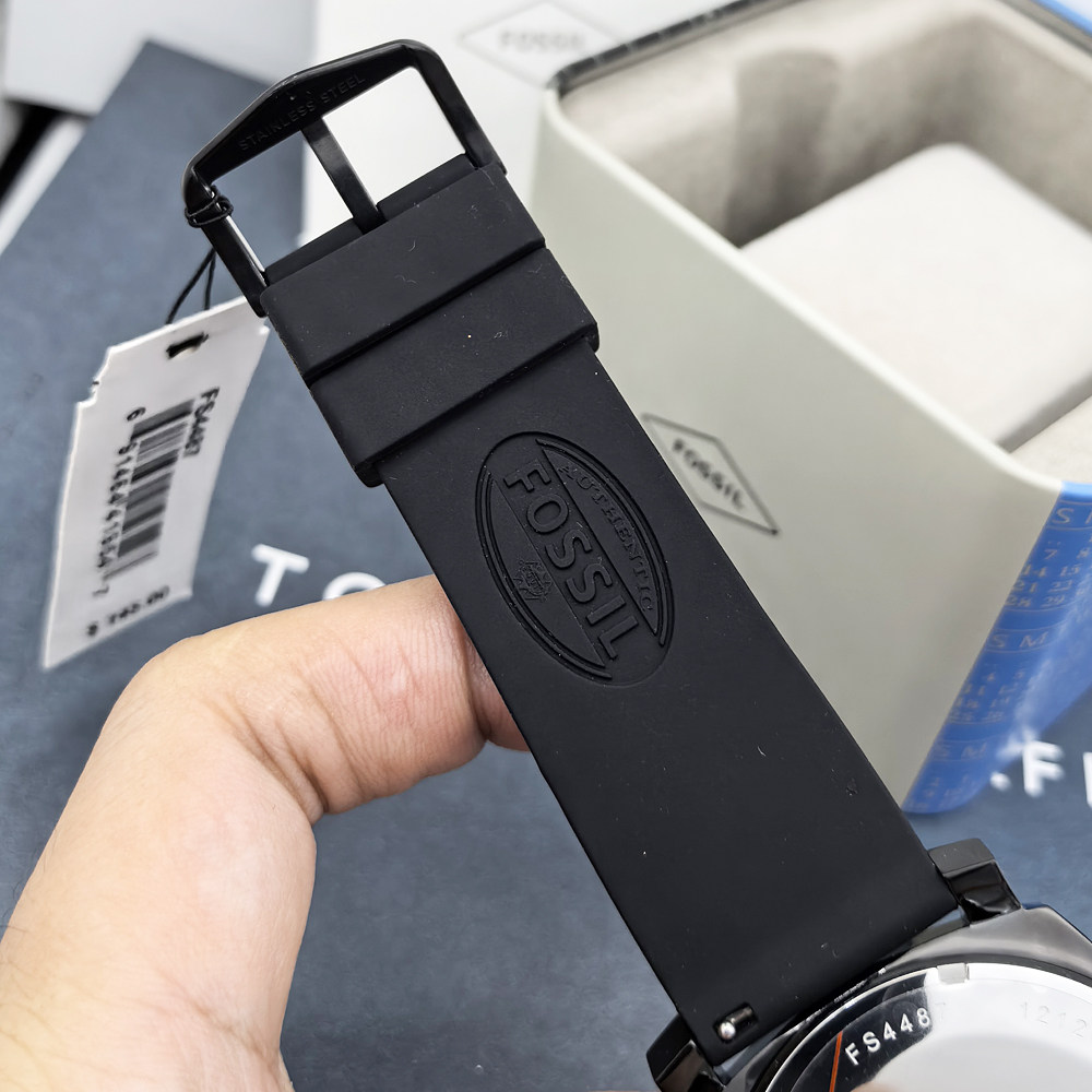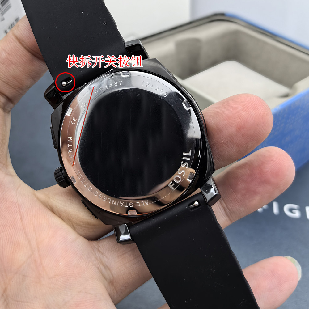 FOSSIL手表硅胶表带黑色计时石英表休闲时尚日历防水男表FS4487