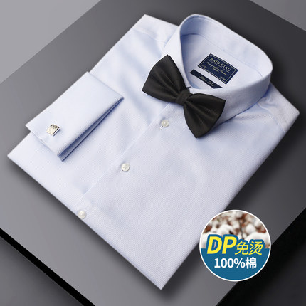 法式衬衫男长袖纯棉免烫领结款结婚新郎正装西装男士袖扣衬衣礼服