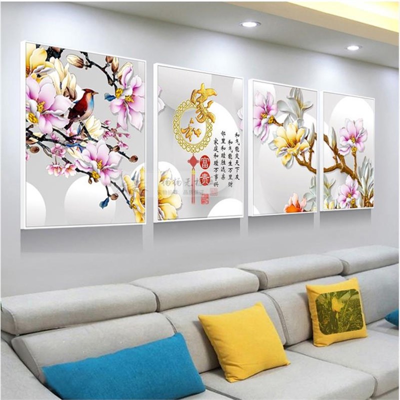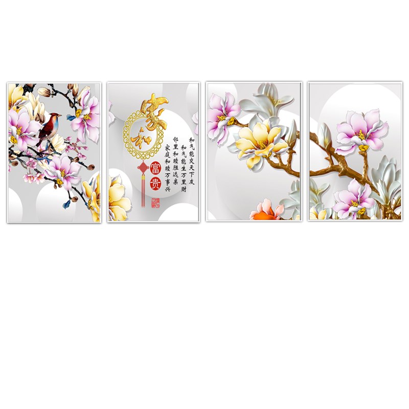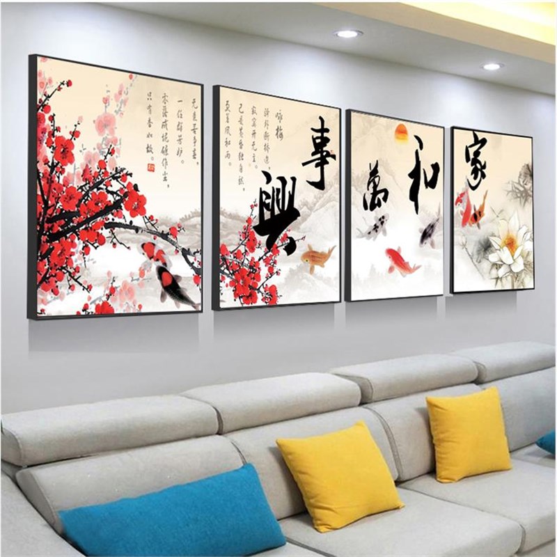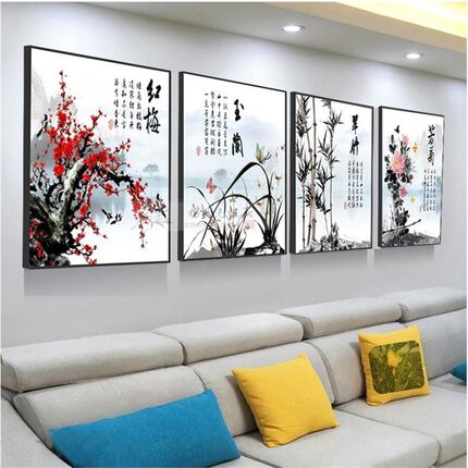 简约大气四联画客厅墙面装饰画沙发背景墙画新中式挂画免打孔壁画