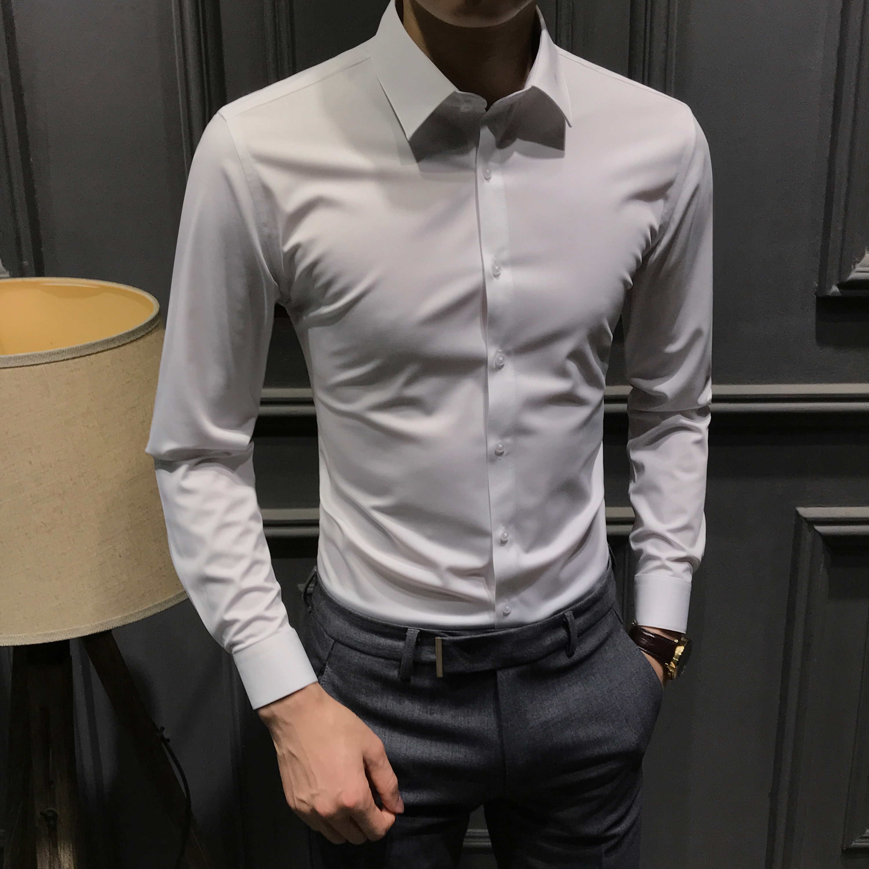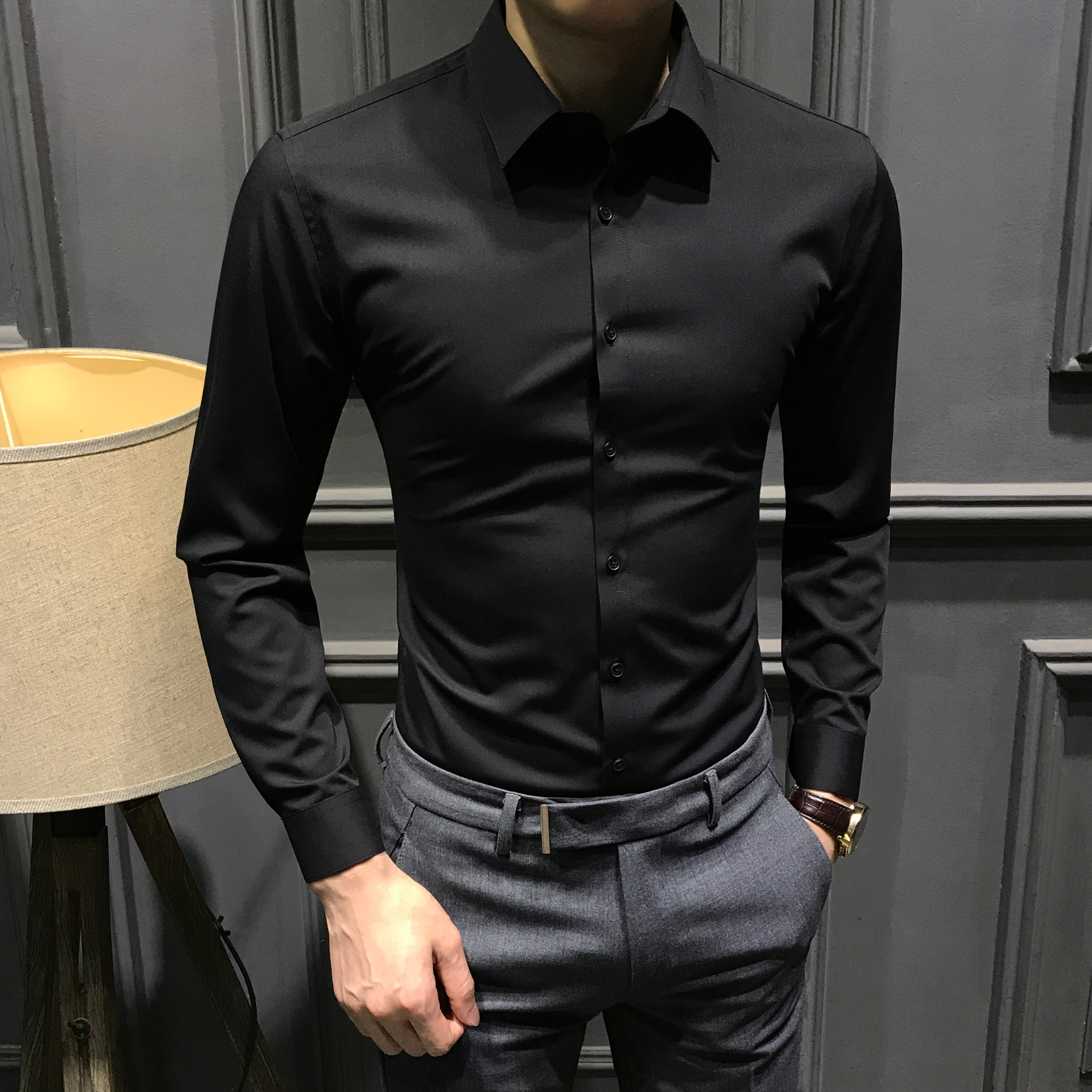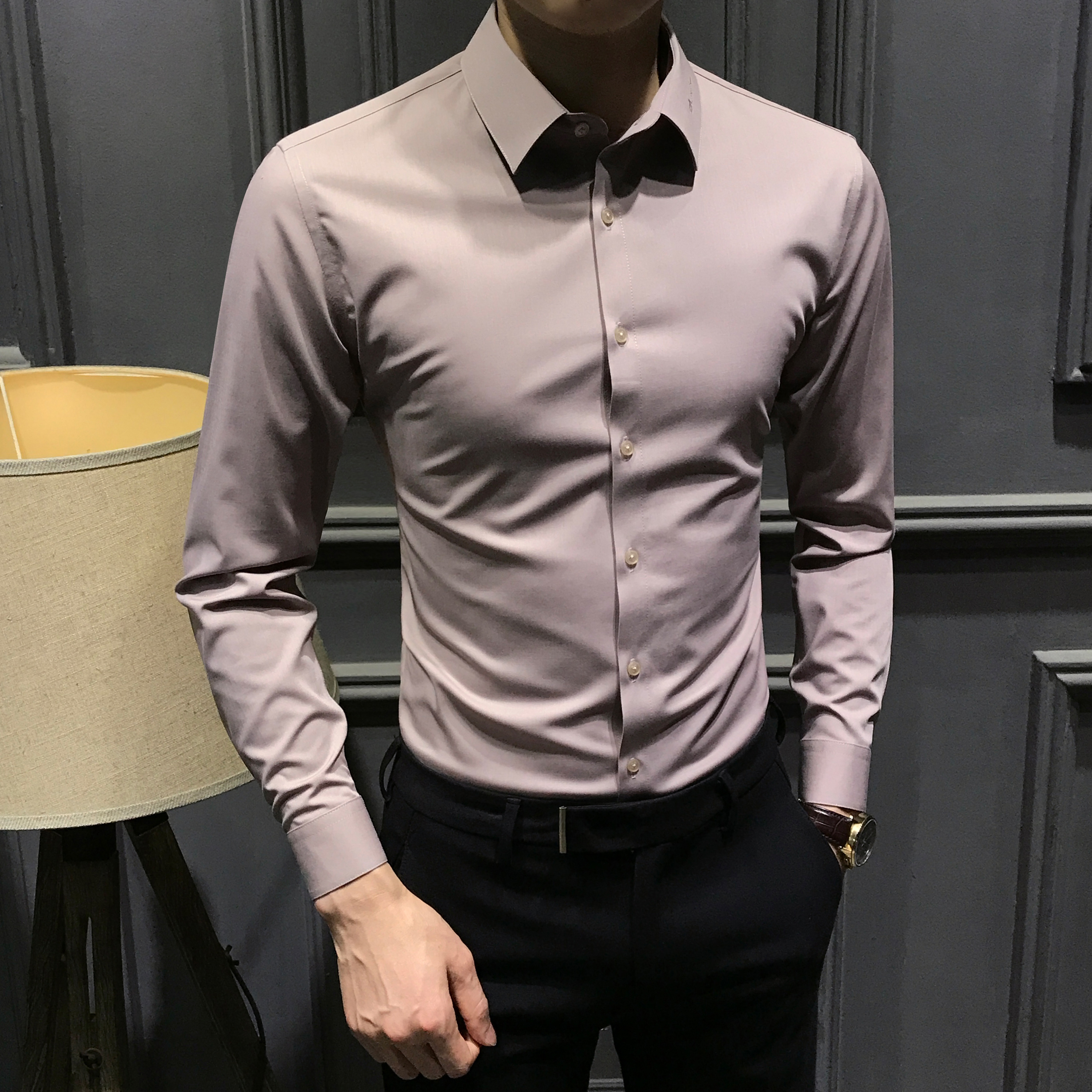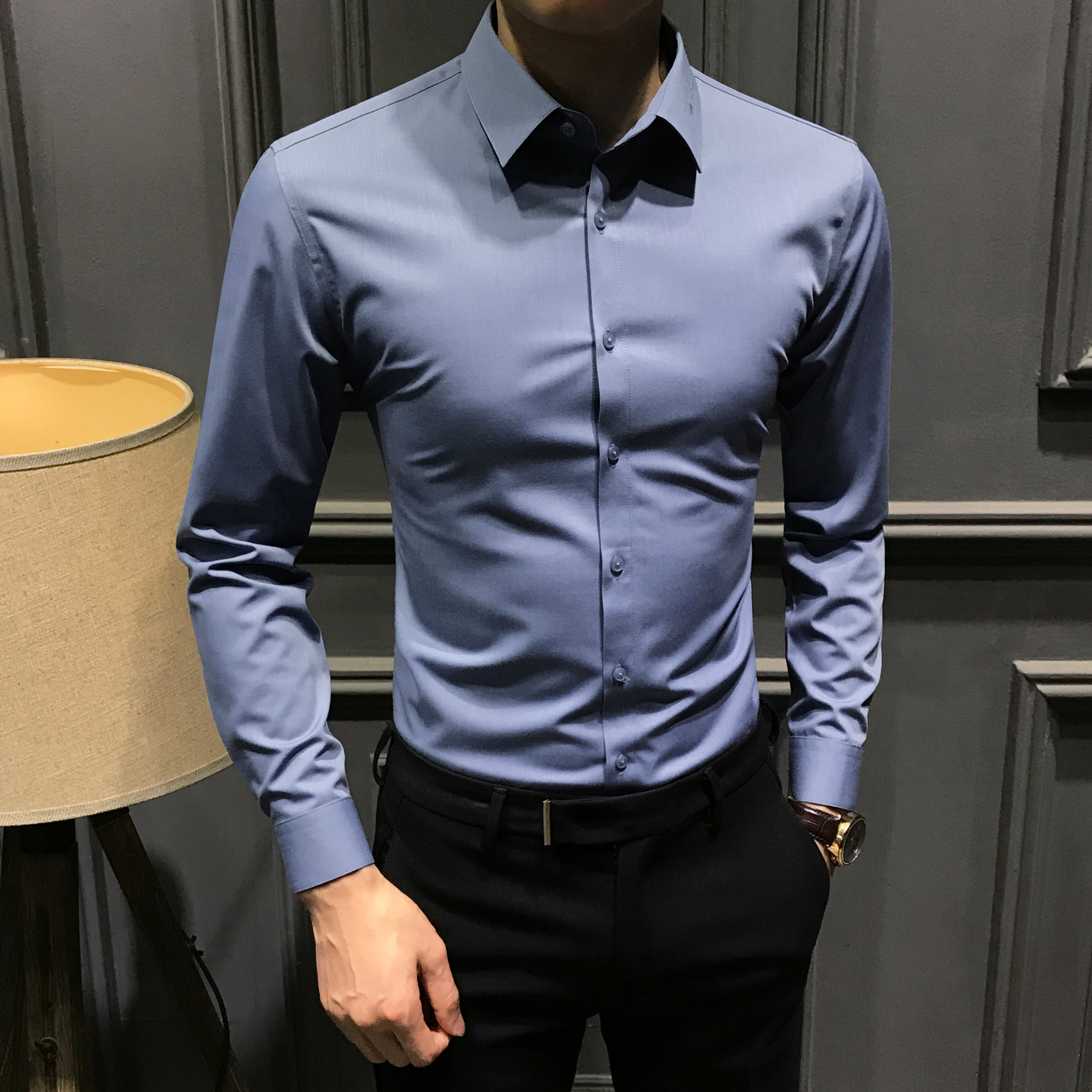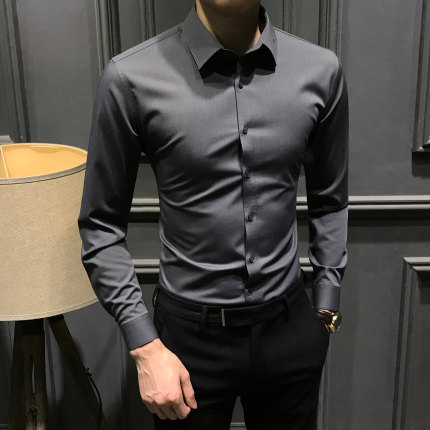 高级品质纯色男士长袖衬衫2025新款高档修身衬衣休闲商务百搭男装