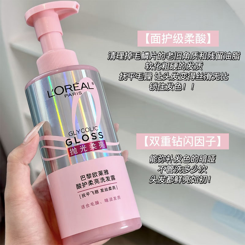 闪噗噗!!欧莱雅粉晶晶抛光柔亮洗发水洗护闪耀柔顺改善干枯毛躁