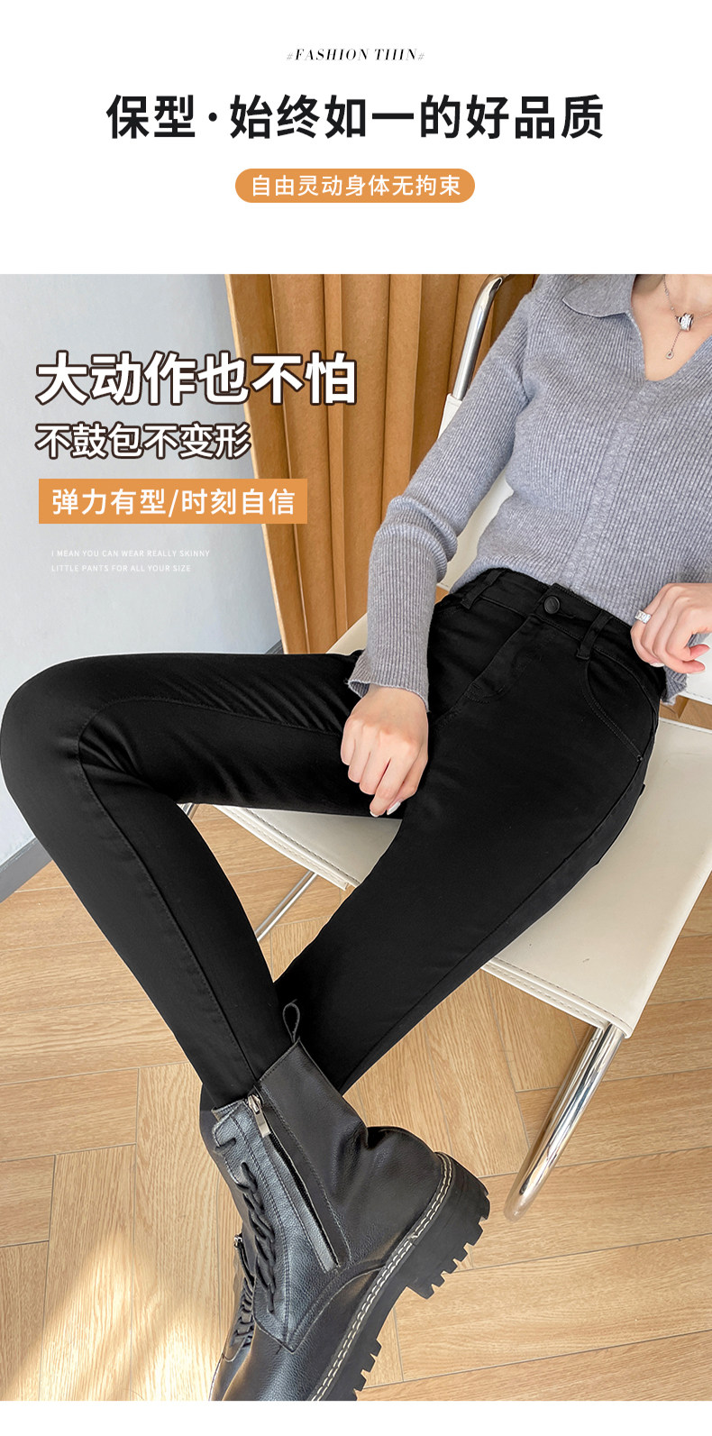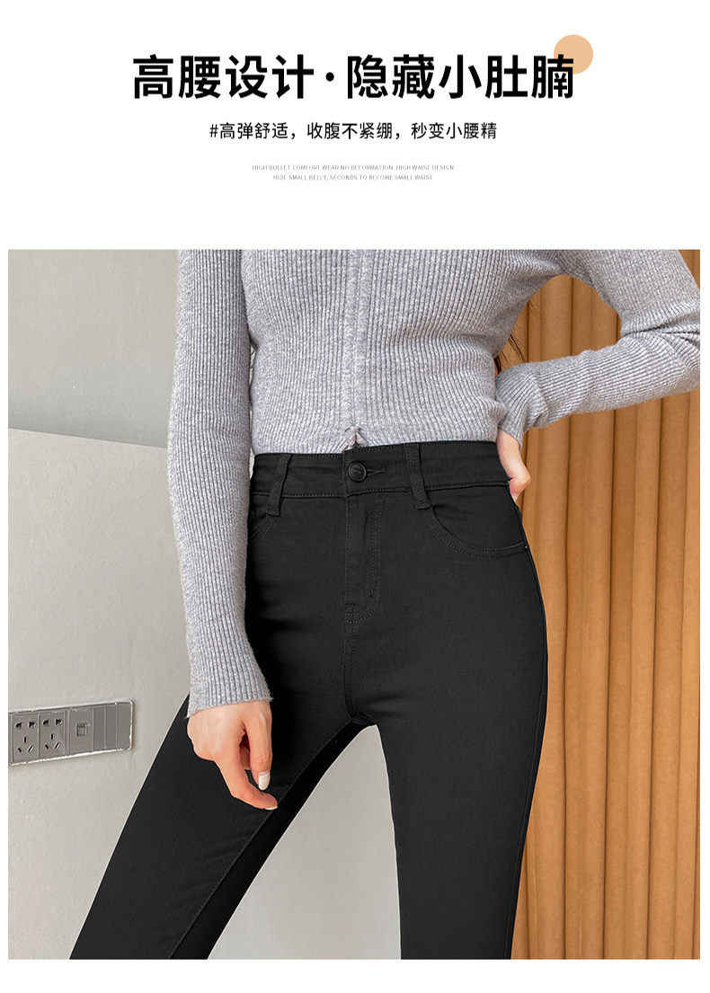 黑色小脚牛仔裤女紧身弹力2022春秋加绒八分小个子高腰韩版长裤潮