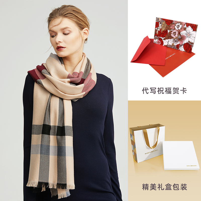 MARJAKURKI玛丽亚古琦英伦格子羊毛围巾女冬季红色针织大披肩外搭
