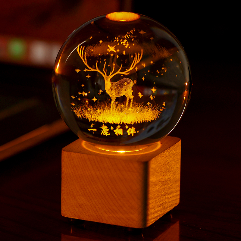 生日礼物发光水晶球麋鹿卧室摆件治愈系男送女朋友闺蜜开学伴手礼