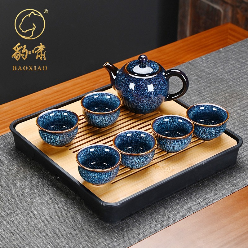 窑变建盏功夫茶具套装家用带茶盘
