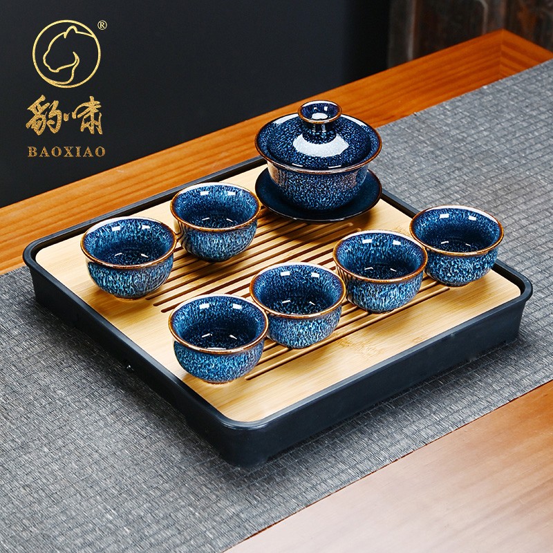 窑变建盏功夫茶具套装家用带茶盘整套盖碗泡茶壶茶杯高档客厅送礼