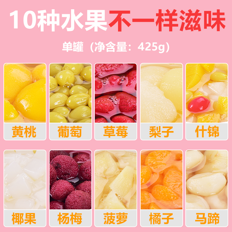 新鲜水果混合糖水菠萝橘子葡萄山楂杨梅草莓砀山黄桃罐头正品整箱
