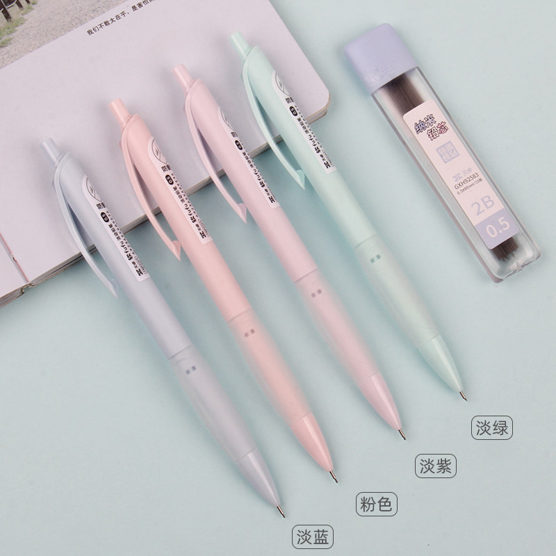 天卓自动铅笔05mm07学生用活动铅软fufu舒适握笔杆q弹软胶软握蓝粉绿紫四色笔杆高颜值书写文具写作业笔按动