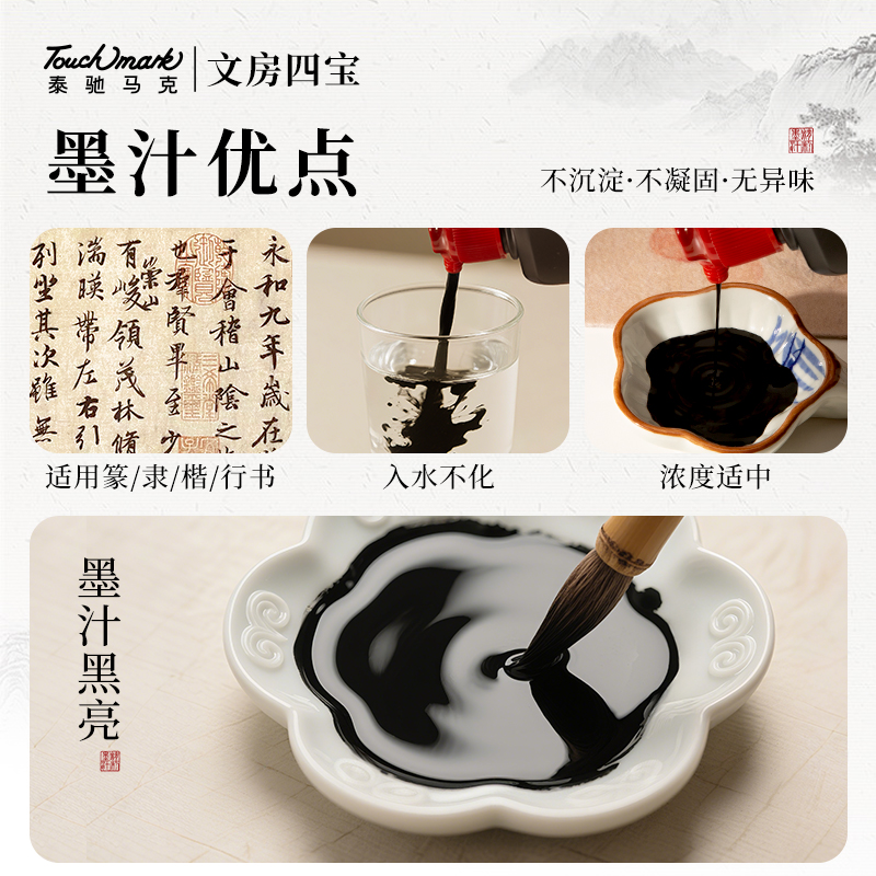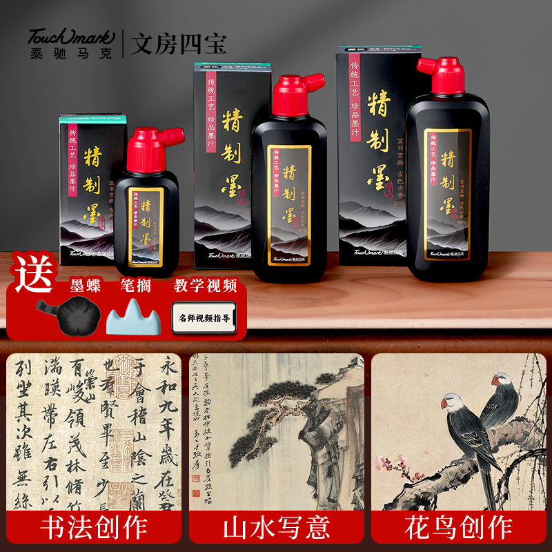 Touchmark精制墨汁书法专用文房四宝小楷书画墨液100/250/500/1000g毛笔墨水国画专用大瓶大桶练习毛笔油烟墨