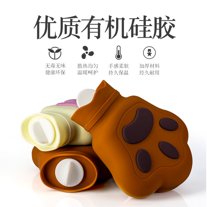 硅胶热水袋注水暖手袋卡通可爱便携熊掌猫爪加厚防爆暖手宝暖水袋
