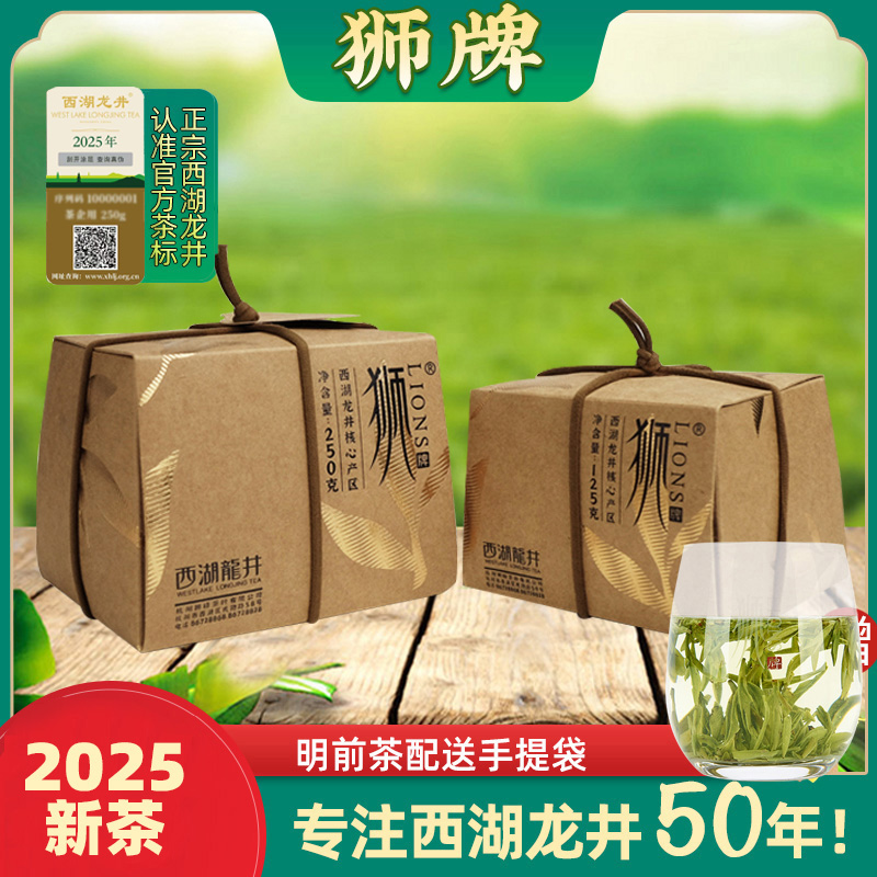 2025新茶 狮峰龙井 狮牌西湖龙井特选级明前茶 125克牛皮纸绿茶