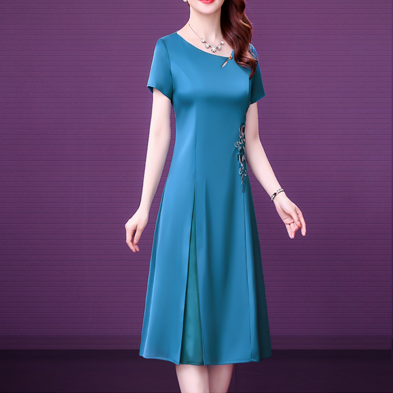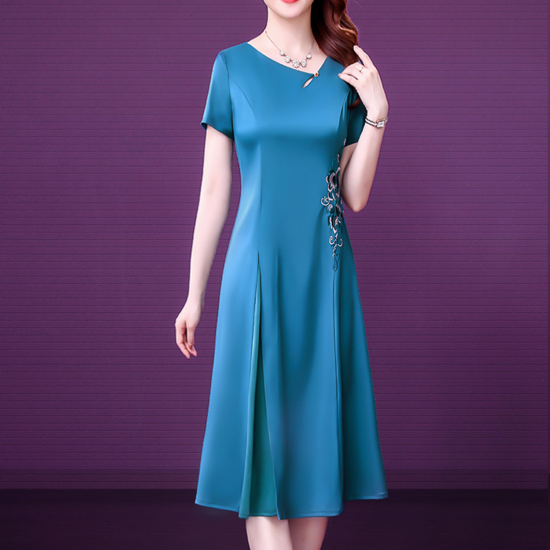 三醋酸缎面桑蚕丝连衣裙专柜正品高端纯色中长款夏季真丝大牌裙子