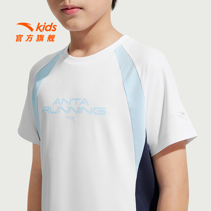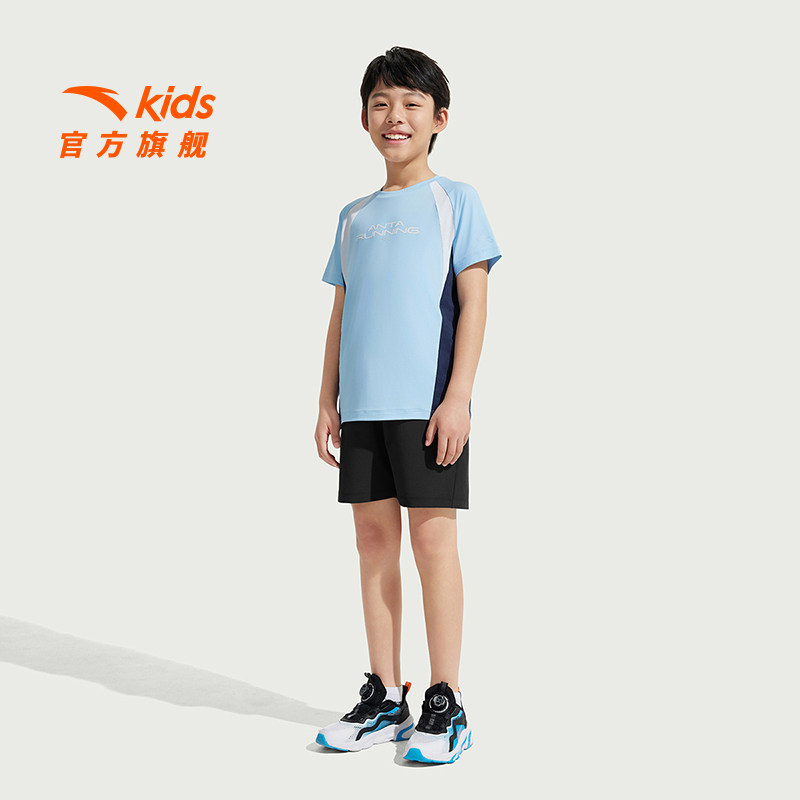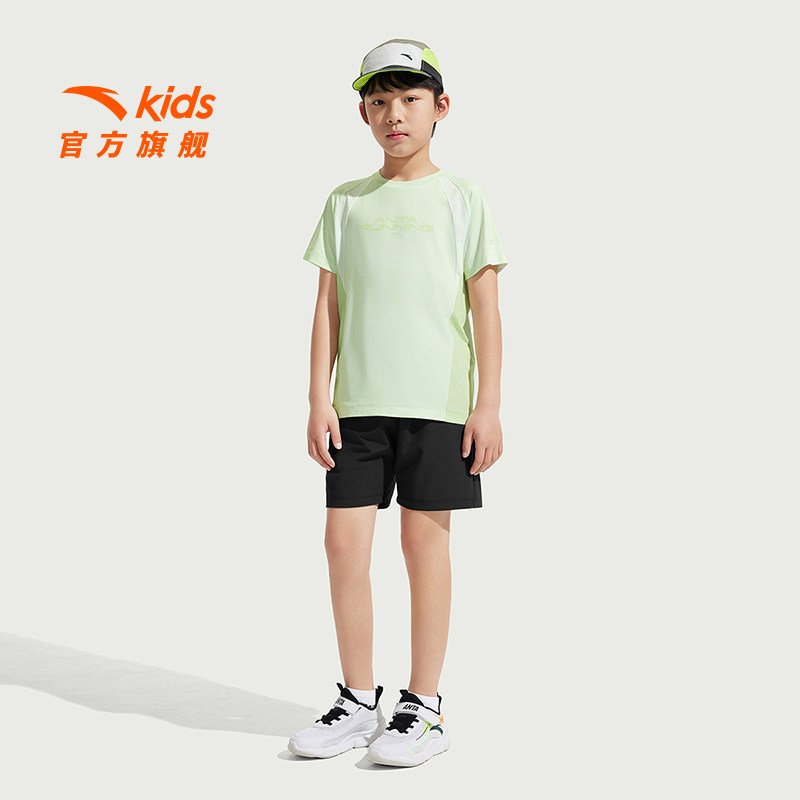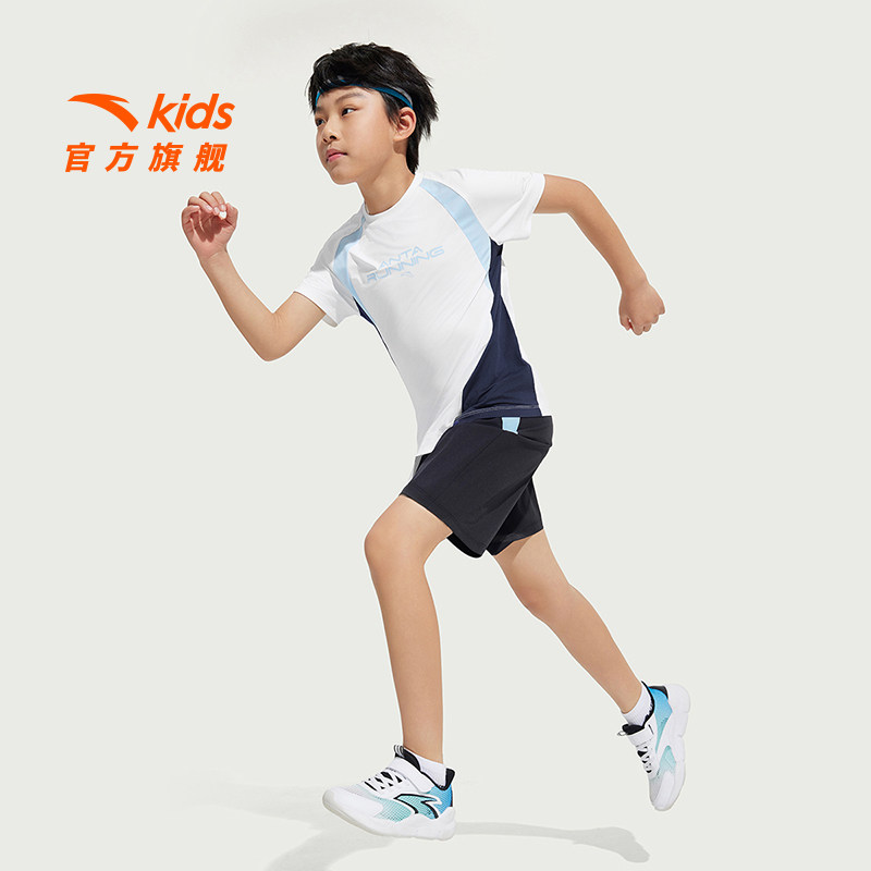 安踏儿童男童针织运动套2025夏季新款透气舒适中大童短袖凉感套装