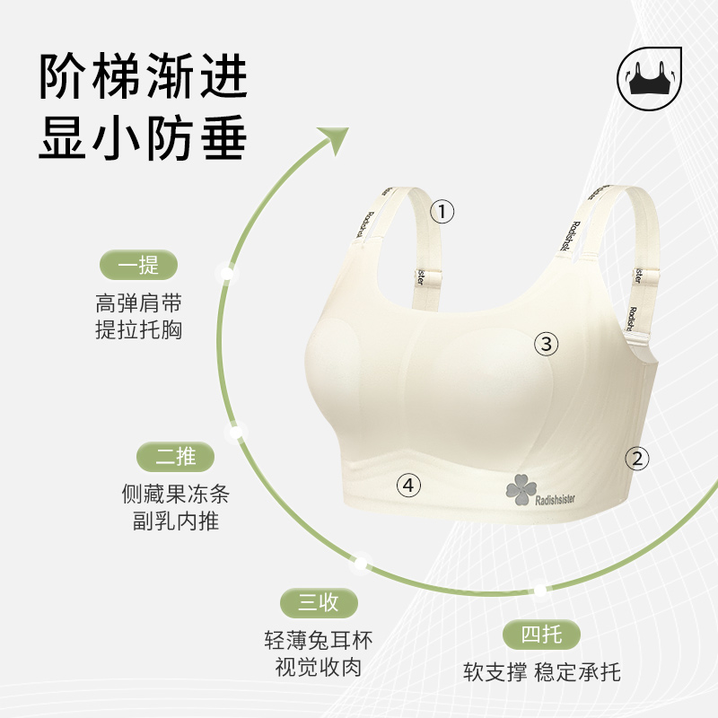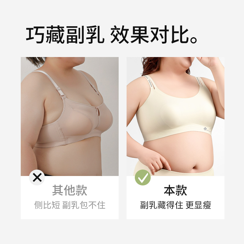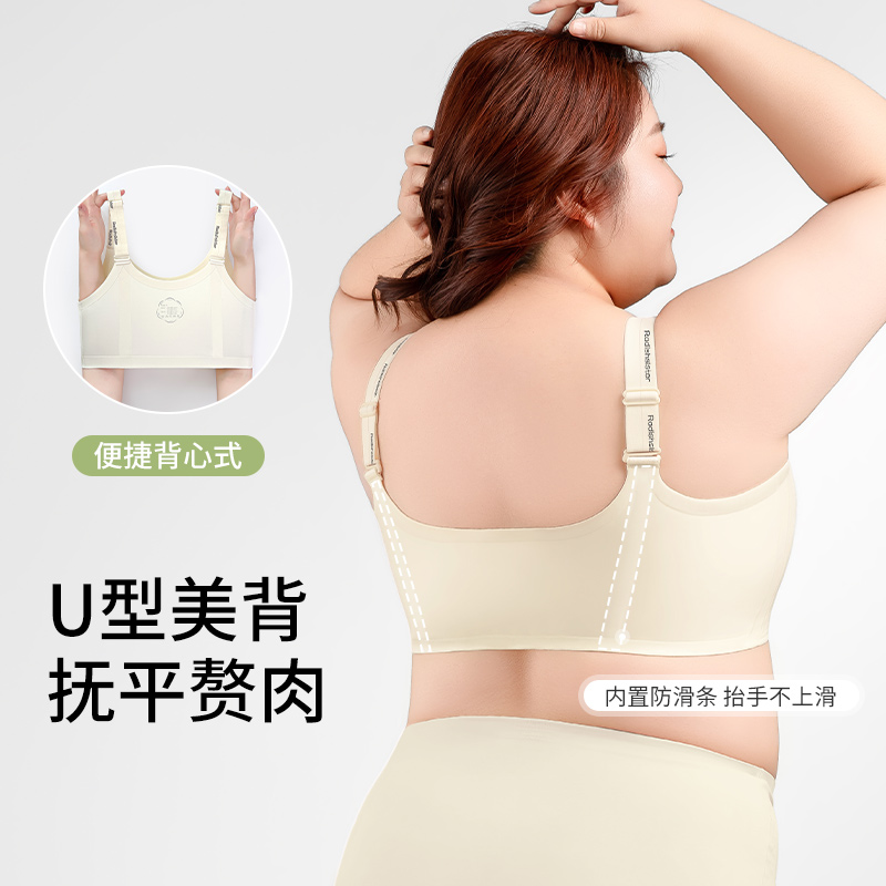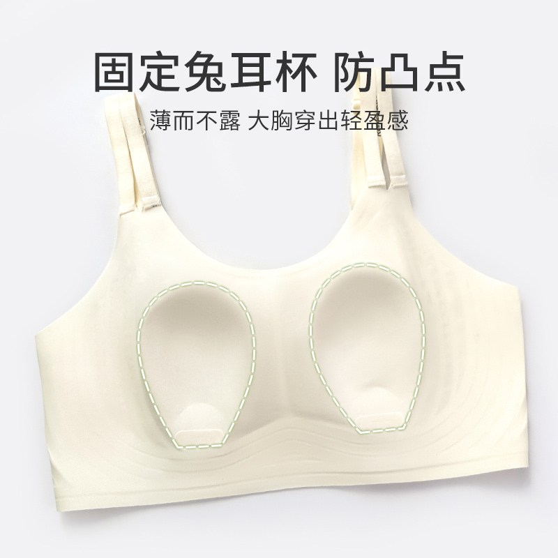 夏季薄款兔耳朵内衣女大胸显小无痕聚拢上托无钢圈背心式胖mm文胸