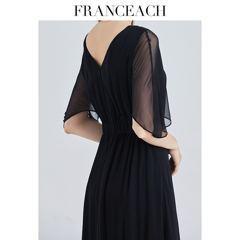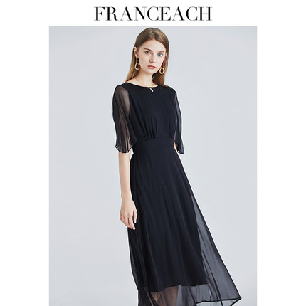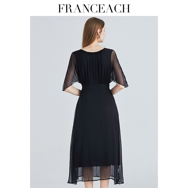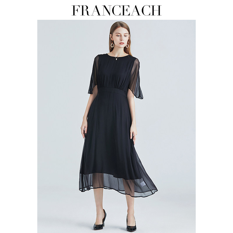 法涵意弛两面穿真丝连衣裙女2023夏新款黑色桑蚕丝赫本风小黑裙