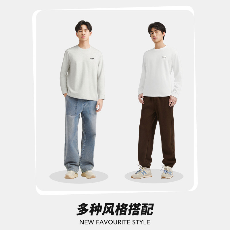 热风男士长袖T恤打底衫上衣2026年春季新款圆领字母长T恤宽松内搭