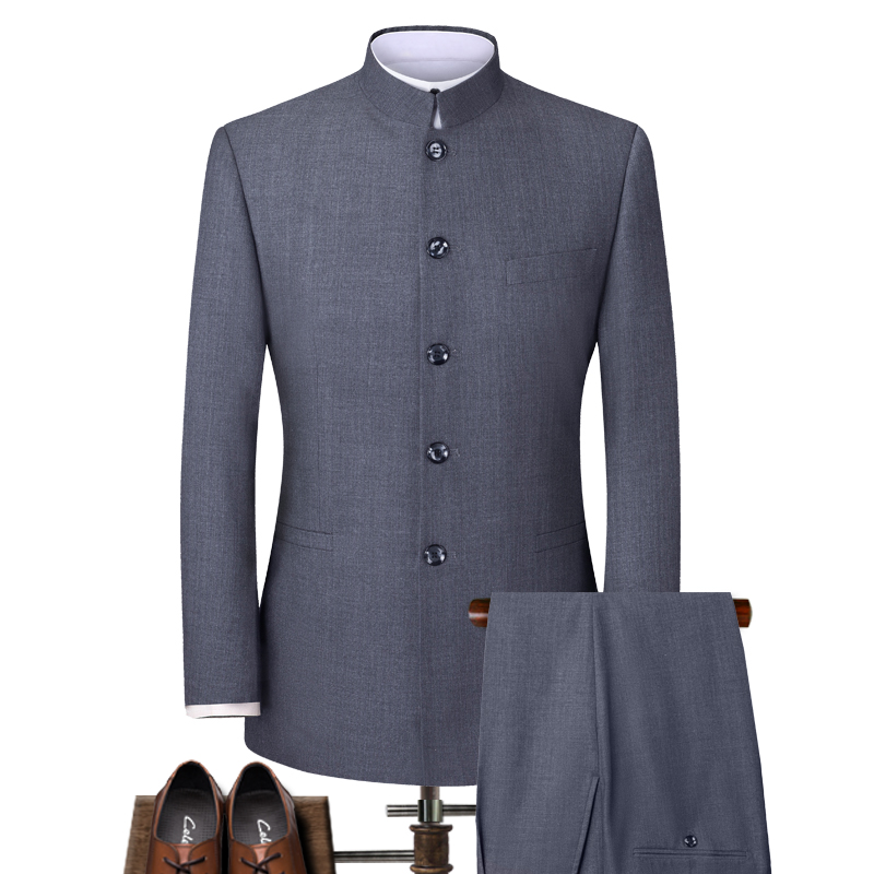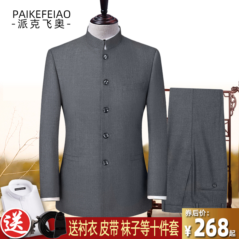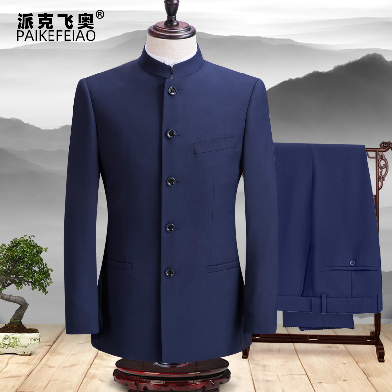 中山装套装男士中老年修身中式礼服中华立领西服中国风唐装爸爸装