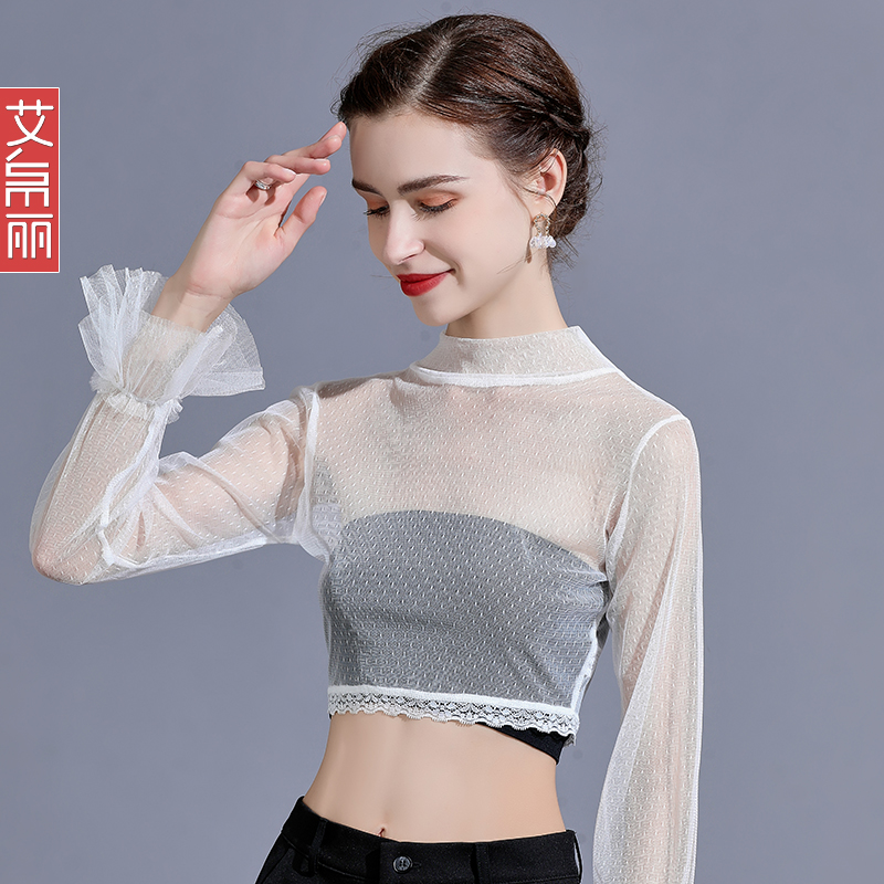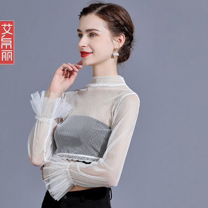 内搭蕾丝打底衫网纱罩衫长袖上衣