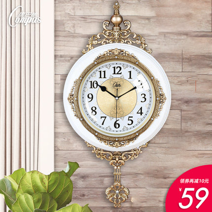 康巴丝欧式钟表创意挂钟摇摆客厅时尚个性挂表静音家用时钟石英钟