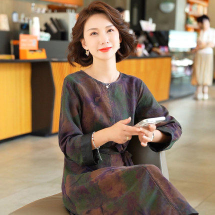 2025新款复古杭州真丝香云纱连衣裙中年妈妈桑蚕丝裙子夏高端大牌