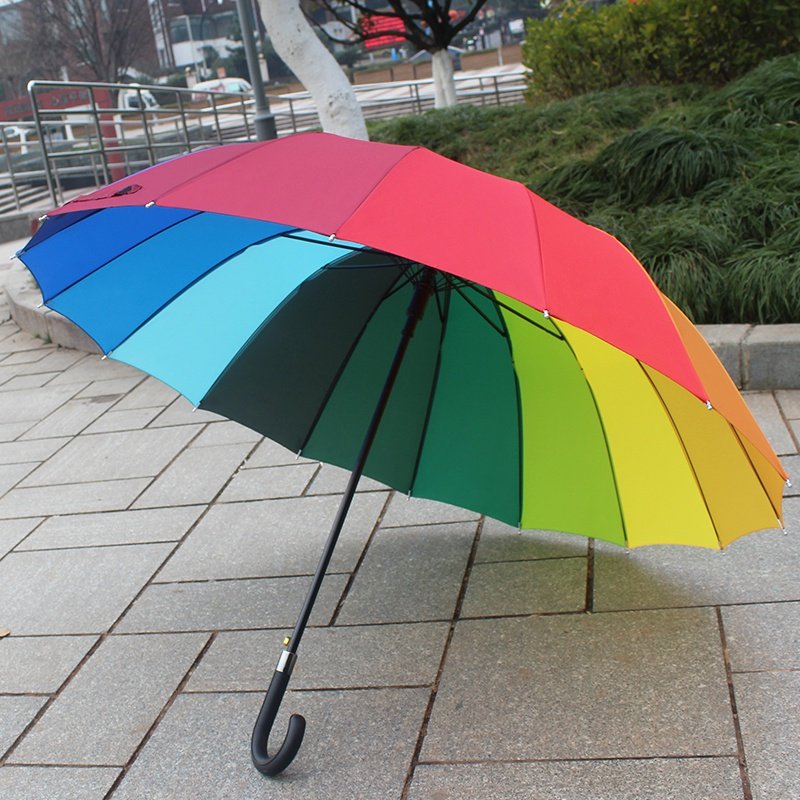 加大16骨长柄弯把彩虹双人晴雨伞定做礼品广告伞定制印字印刷logo