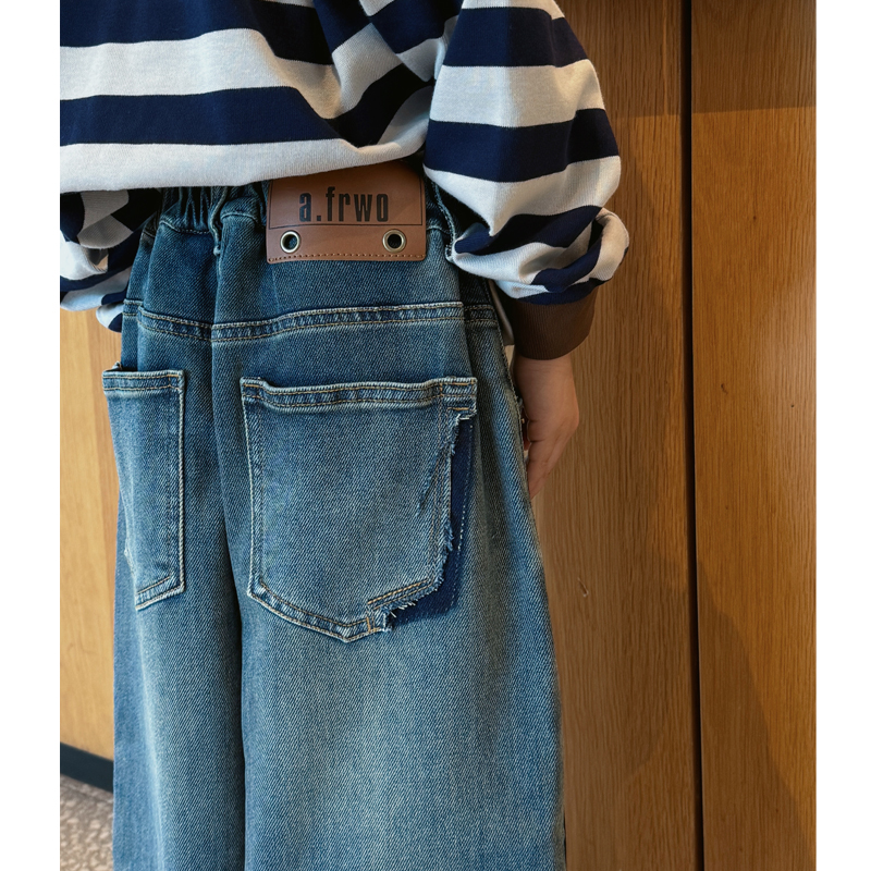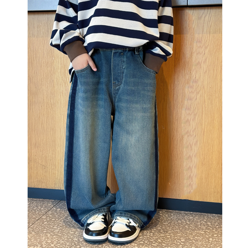 凯文家童装2024秋季新品男童中大童韩系个性毛边口袋牛仔裤休闲裤