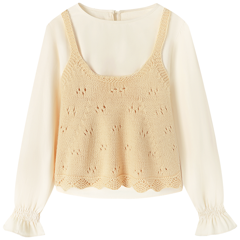 针织吊带背心叠穿长袖衬衫两件套