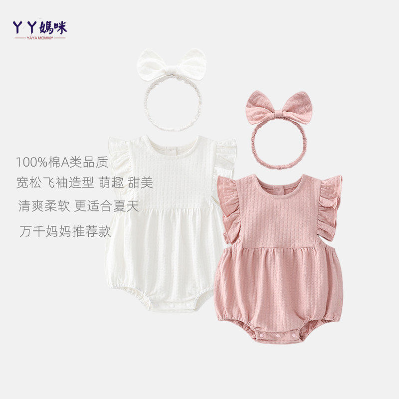 满月婴儿衣服夏装纯棉薄款包屁衣新生宝宝洋气甜美百天宴公主哈衣
