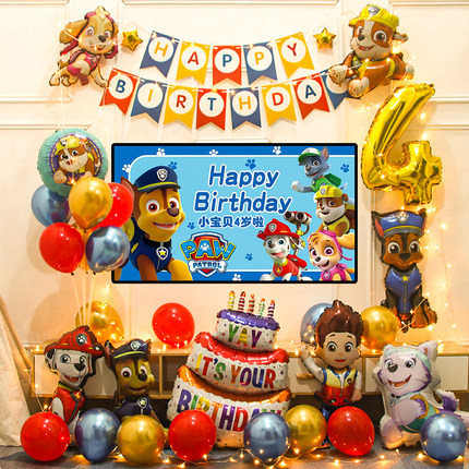 汪汪队男女孩儿童宝宝4周岁生日布置气球装饰电视投屏背景墙场景5