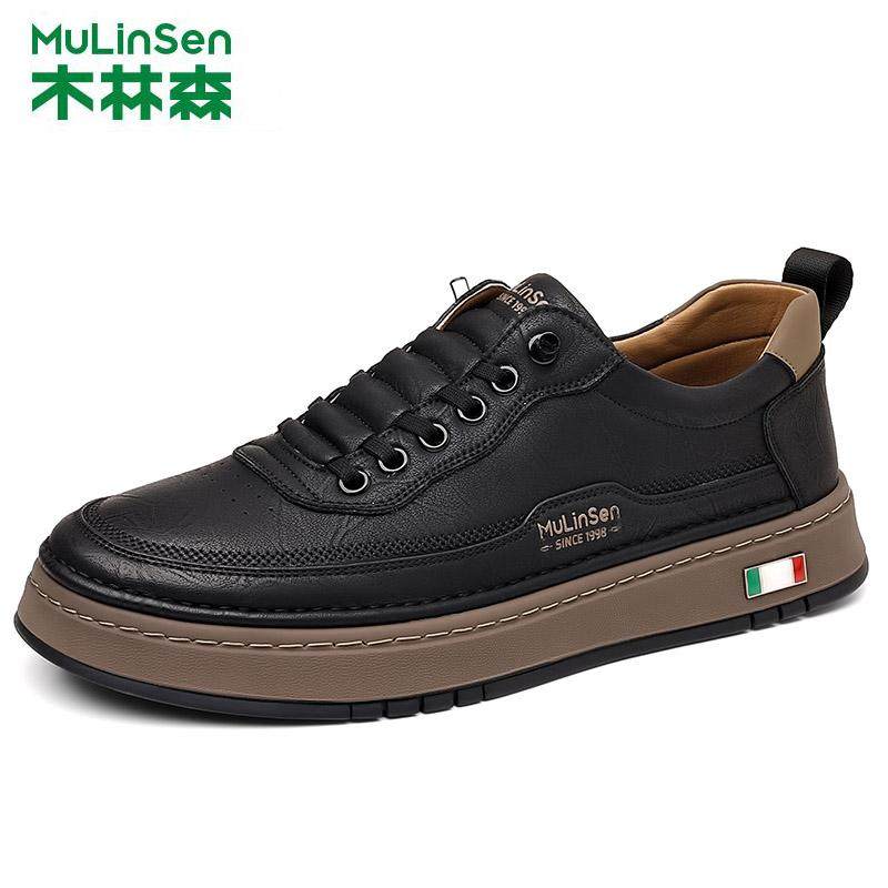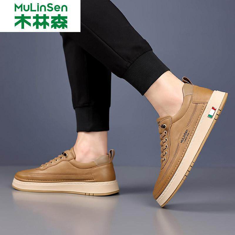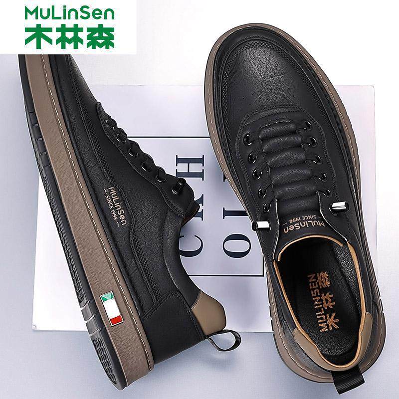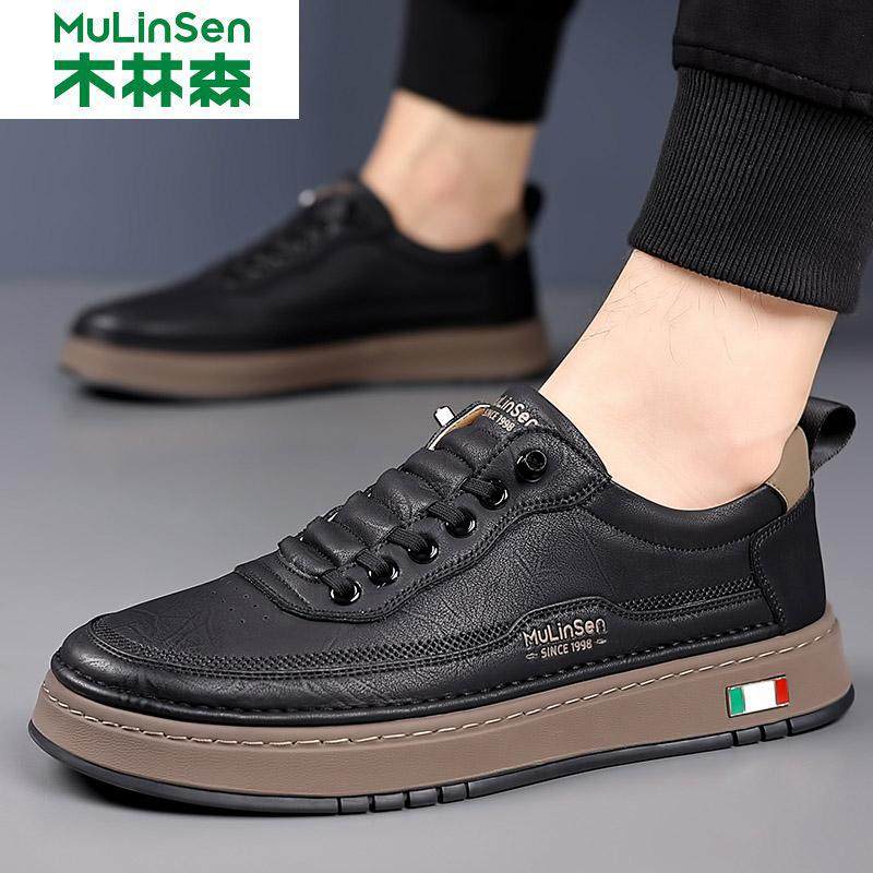 木林森男鞋2025冬季新款时尚潮流板鞋男真皮透气软底休闲皮鞋男款