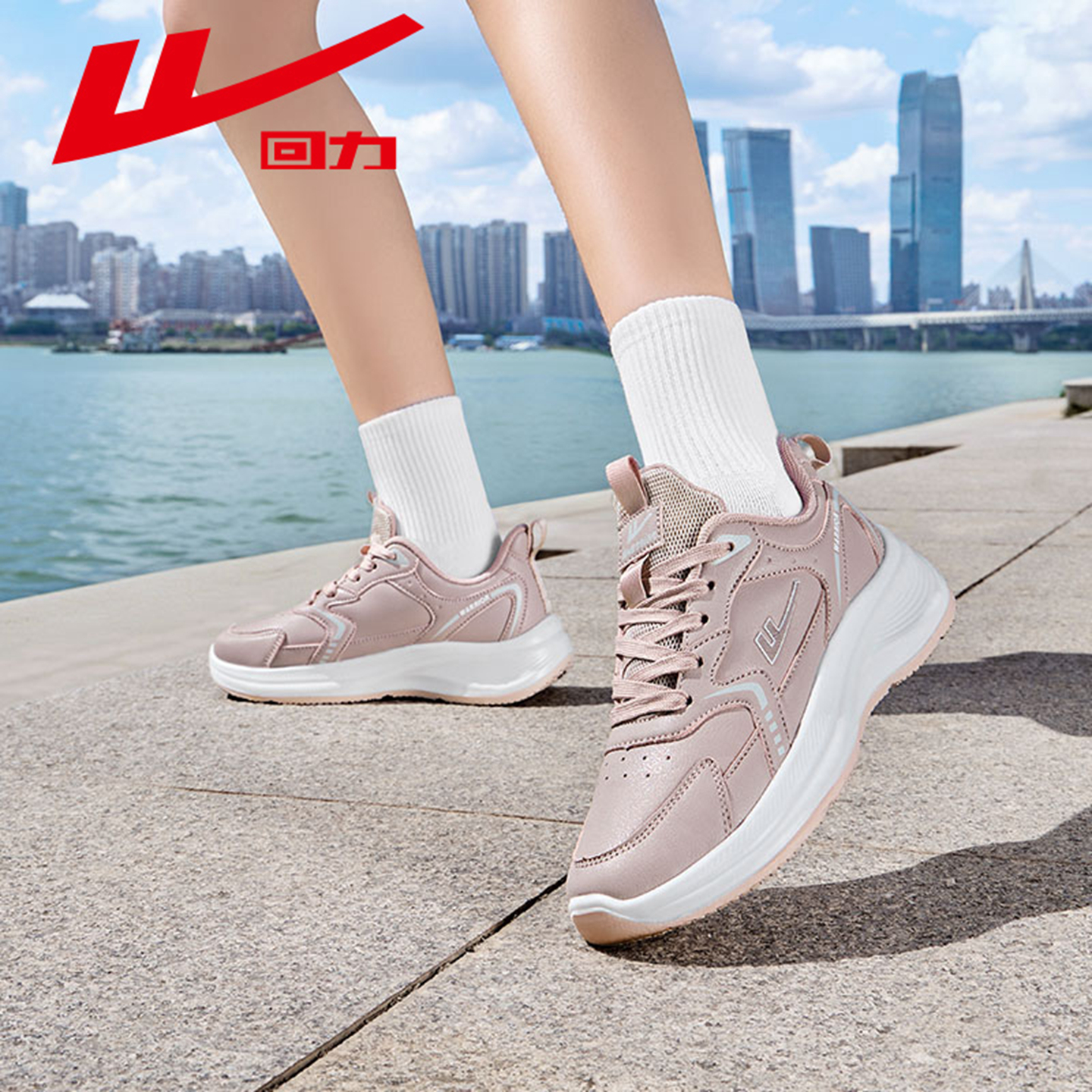 回力女鞋轻便妈妈鞋2025秋季新款防泼水皮面运动鞋软底跑步休闲鞋