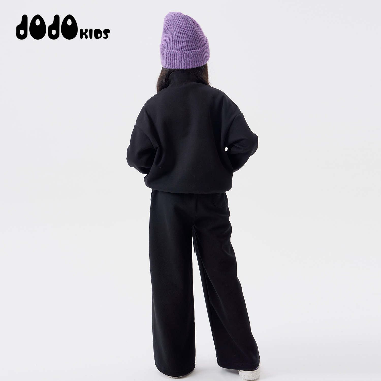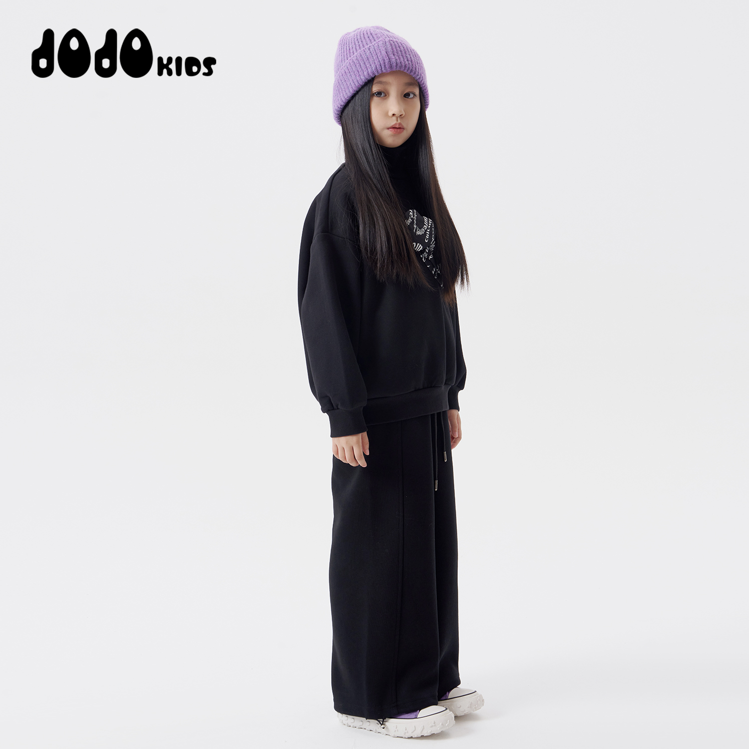 jojo童装女童冬季新款加绒卫衣中大儿童宽松个性洋气圆领套头上衣