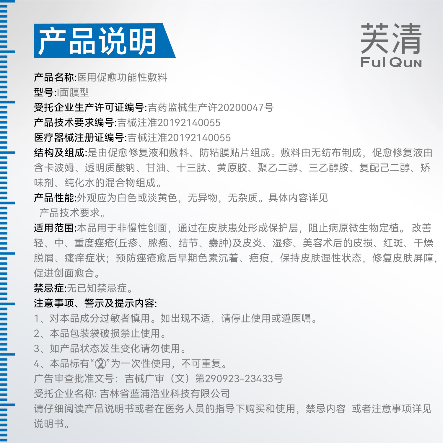 芙清祛痘医美黑膜医用敷料