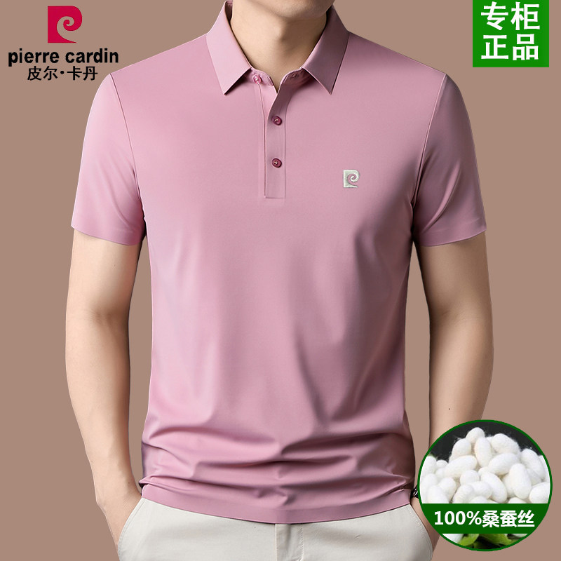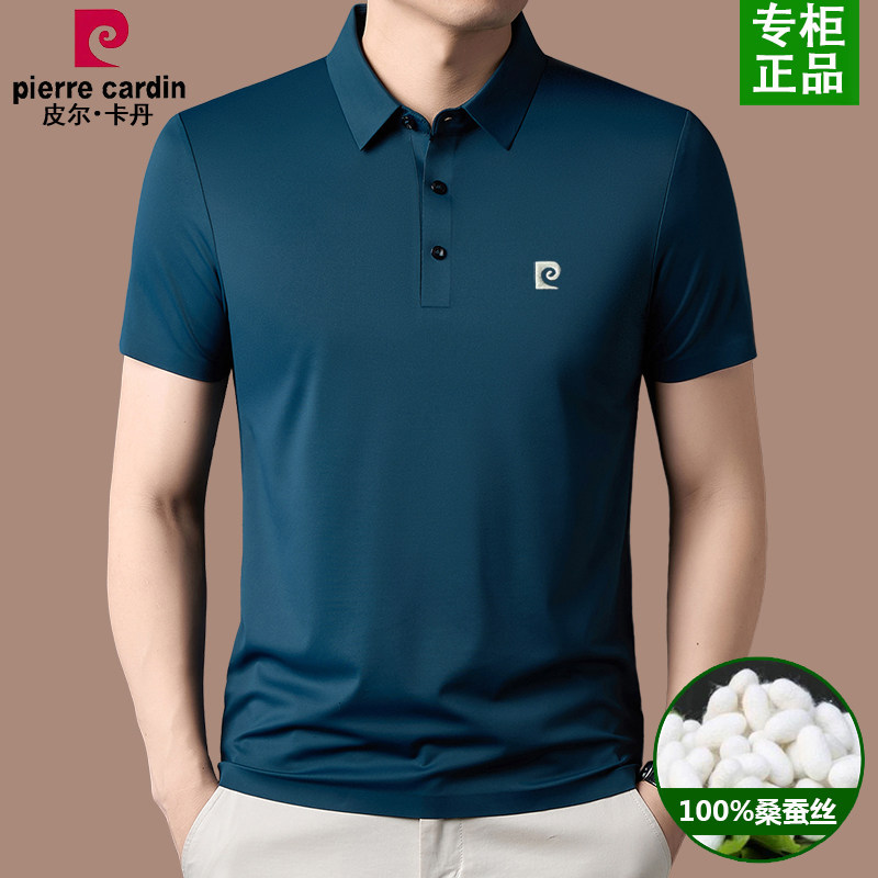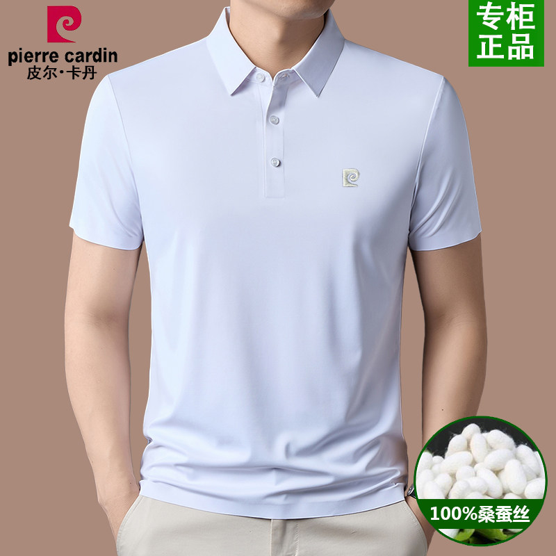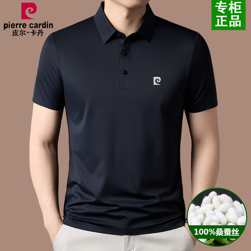 皮尔卡丹桑蚕丝男士短袖T恤夏季新款凉感透气中年商务翻领polo衫