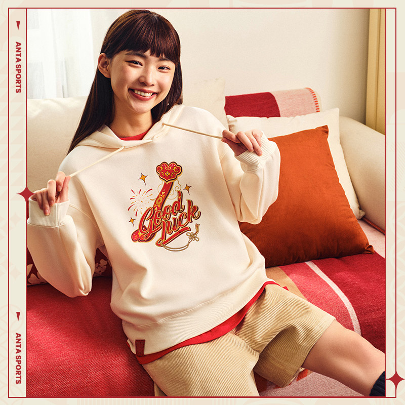 【关晓彤同款】安踏好事发生丨新年鸿运女士加绒套头卫衣运动上衣