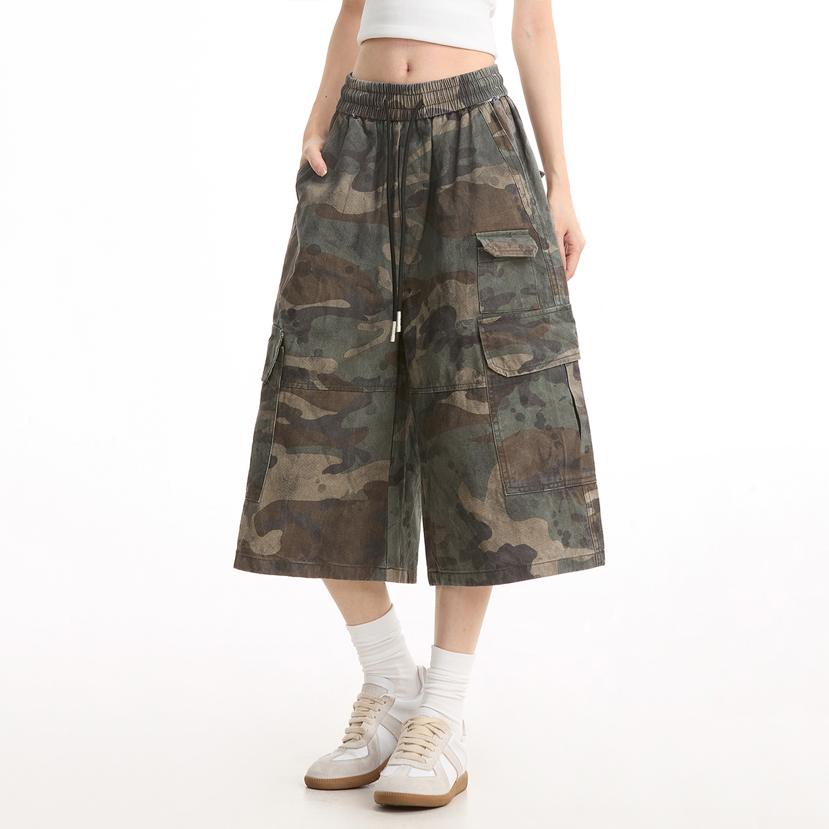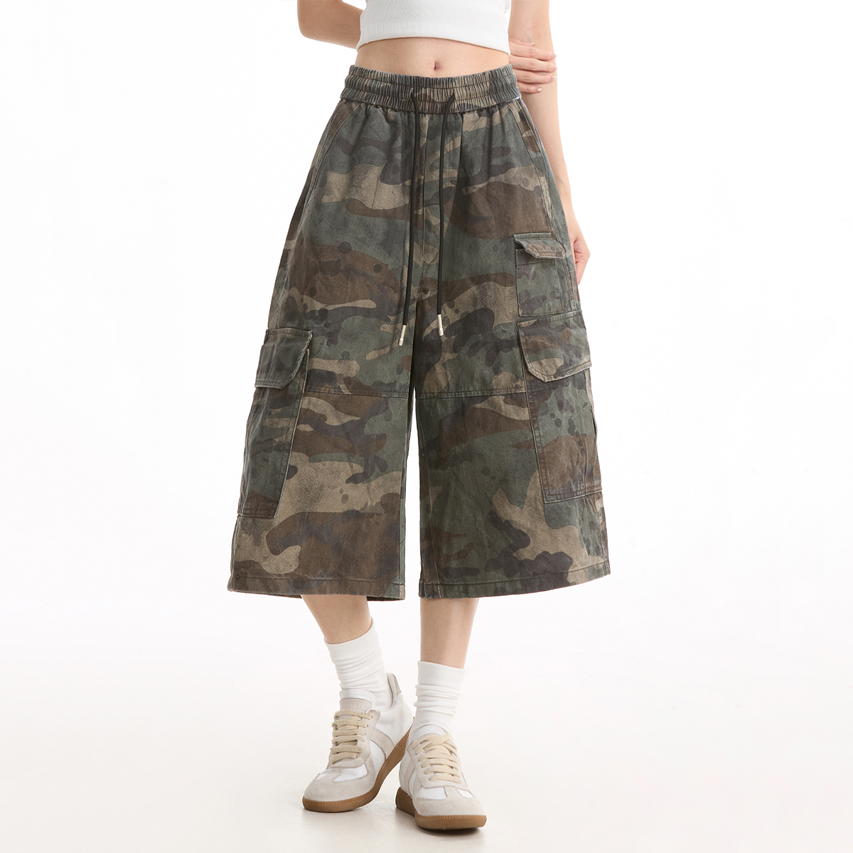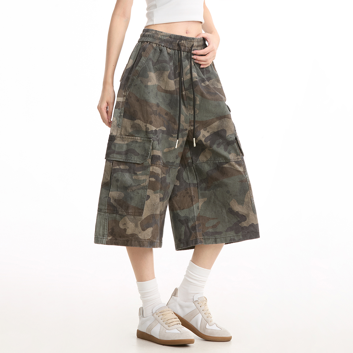NOONOZ夏季美式多口袋迷彩工装短裤男新款潮牌宽松显瘦中裤七分裤