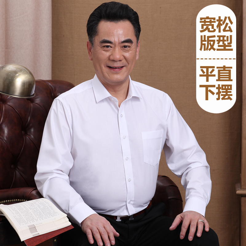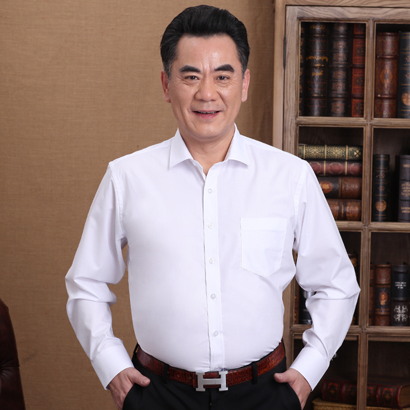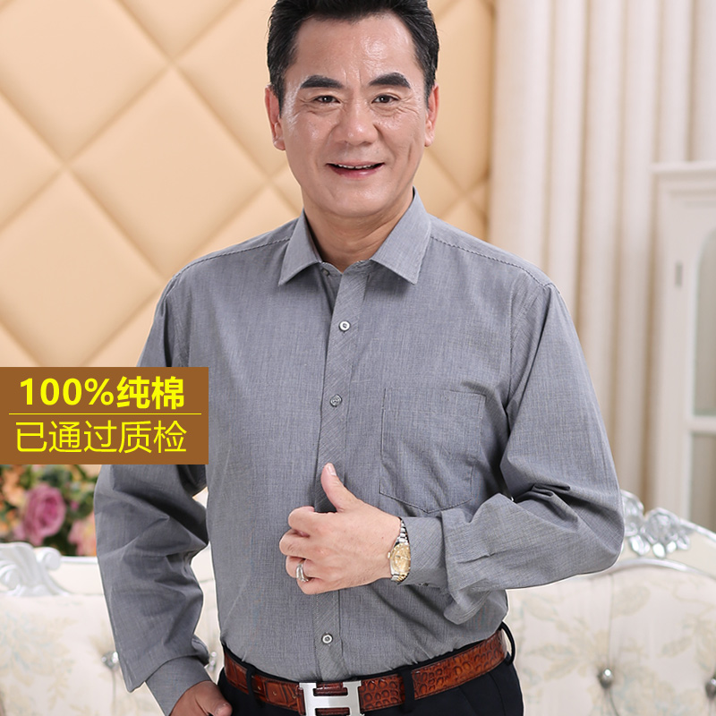 中老年长袖衬衫男中年爸爸装全棉白衬衣宽松大码老人衬衫薄款