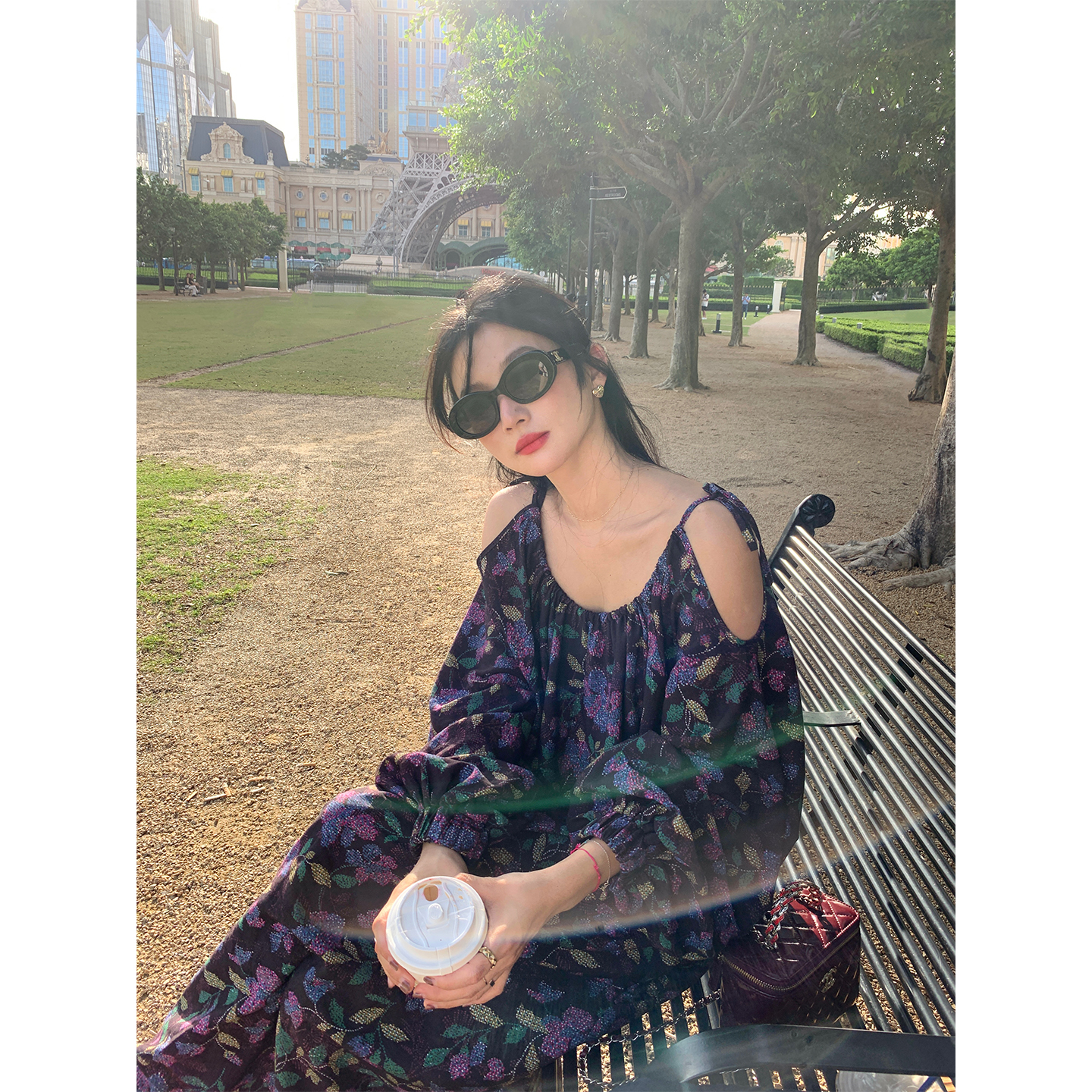 落落狷介长袖宽松碎花连衣裙女