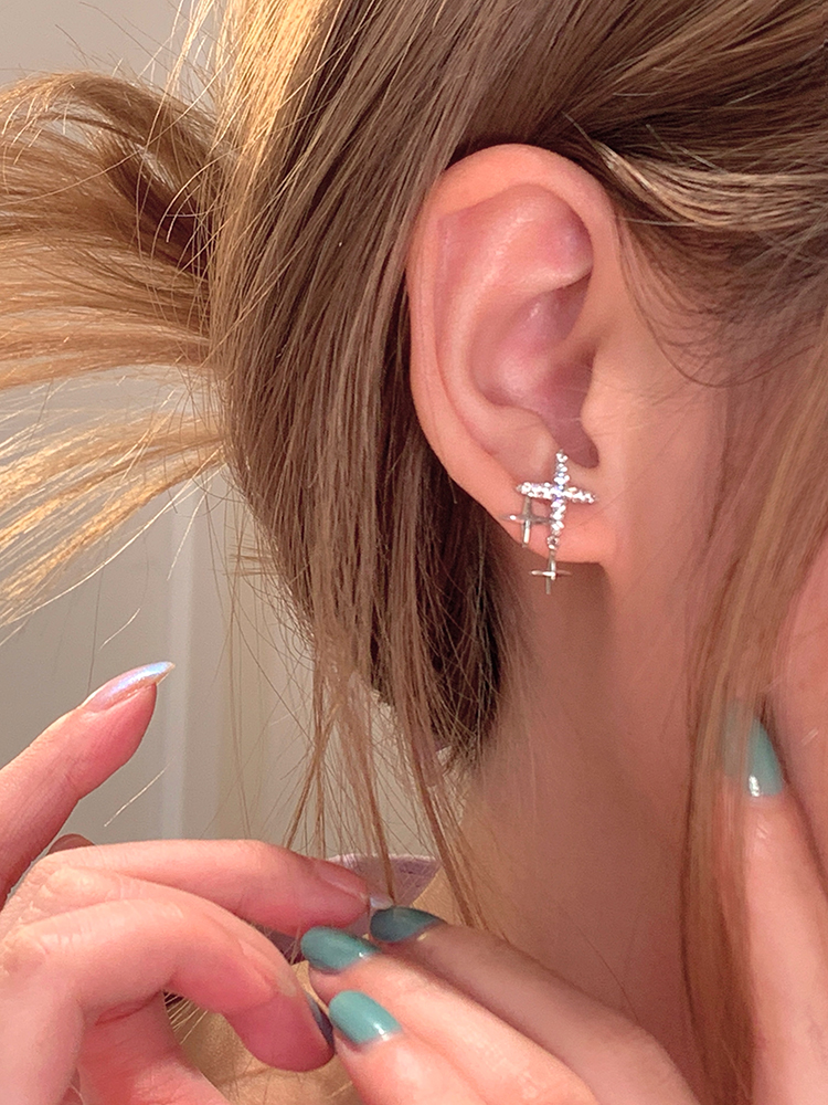 【蜜桃茶】925纯银四芒星耳钉星星耳环女夏2024新款爆款耳夹耳饰